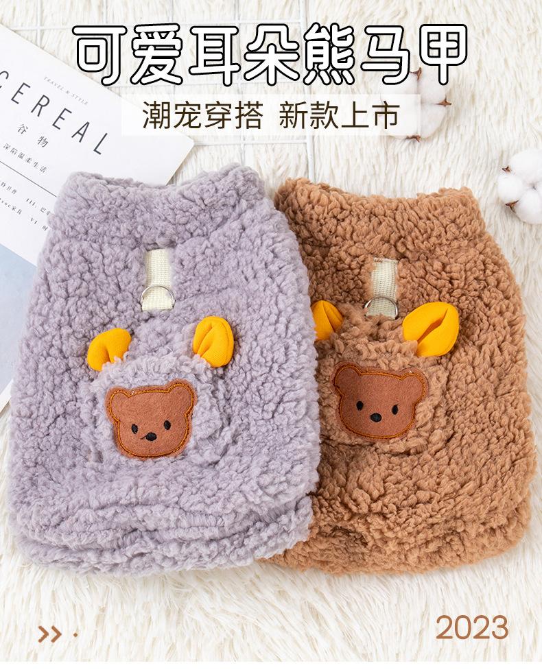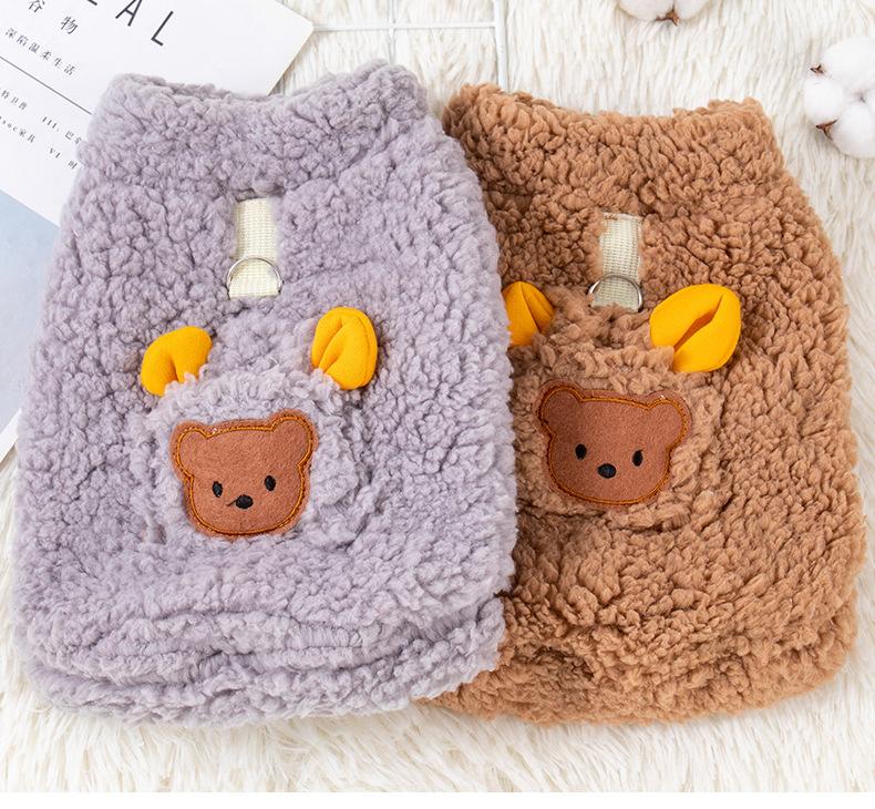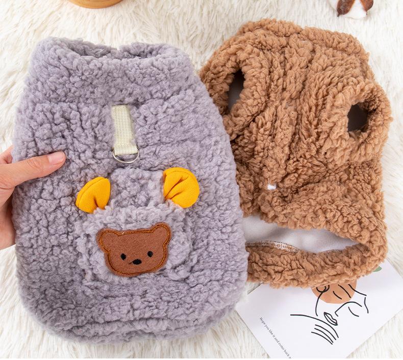 Outono e inverno gato de estimação urso amargo pelúcia cão tração colete engrossado quente inverno roupas para animais de estimação lote