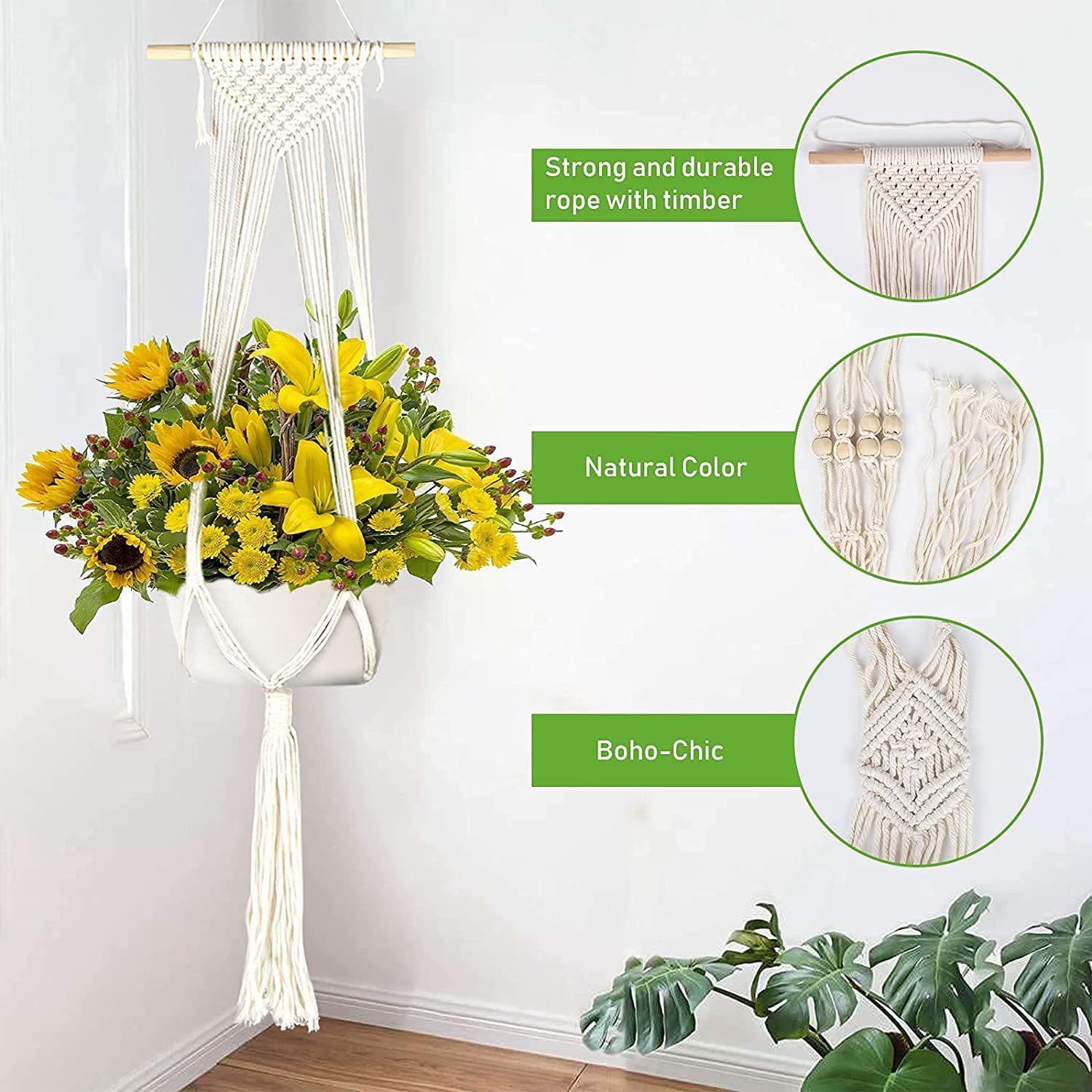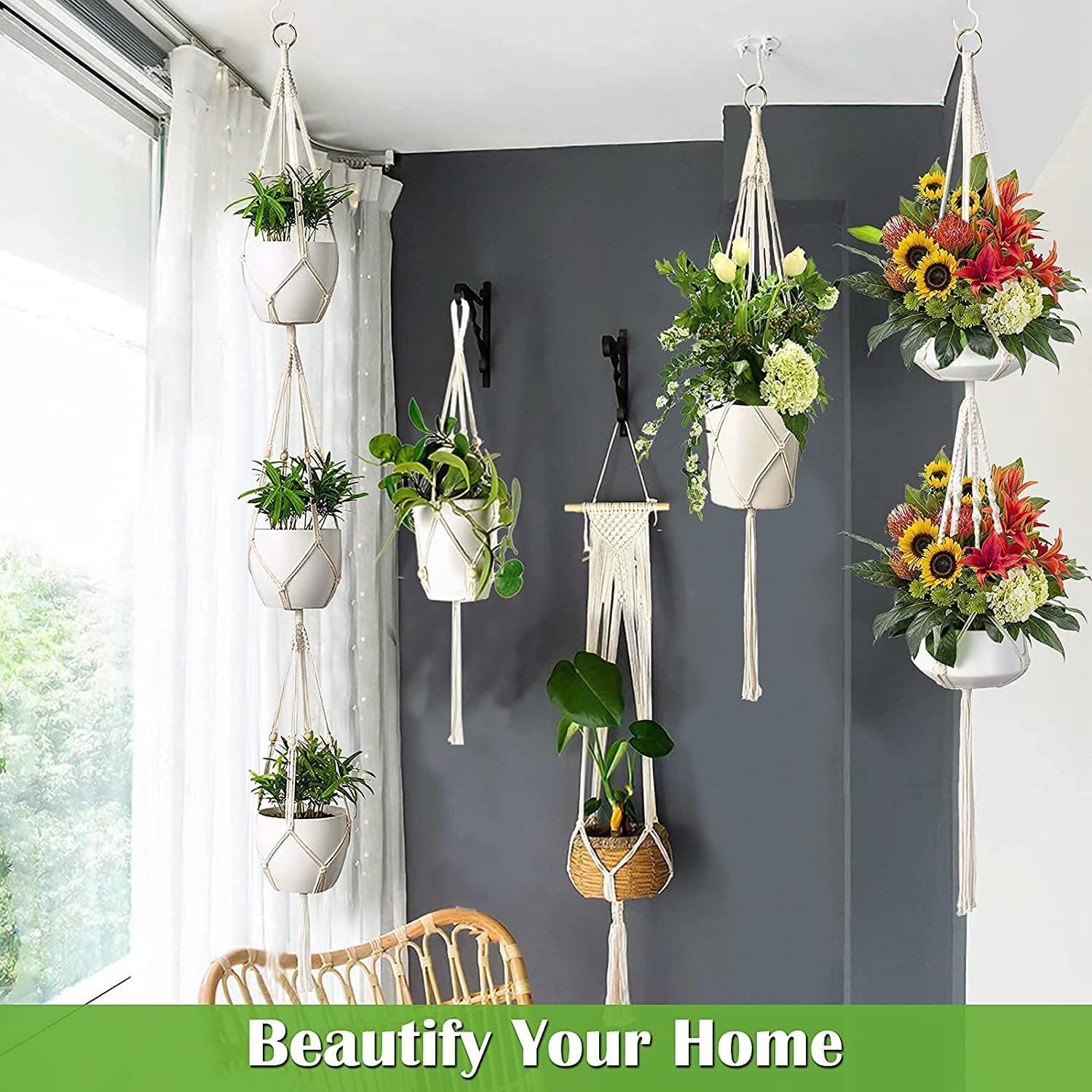 Bolso de rede para vasos de flores transfronteiriços, bolso de rede para plantas verdes de jardinagem, pendurado em vaso de flores, cesta de plantas pendurada em corda de algodão, bolso de rede para vasos de flores