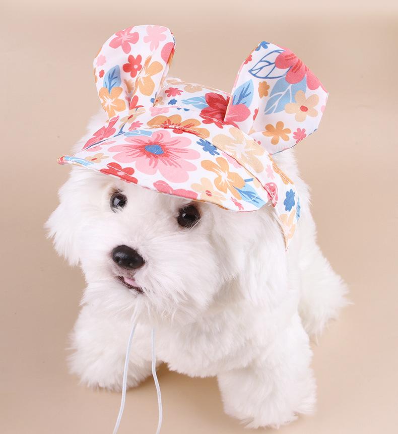 Chapéu de gato e cachorro de primavera, chapéu protetor solar para animais de estimação, chapéu respirável para pescador, chapéu de orelha de gato, vazamento de sol, chapéu de flor