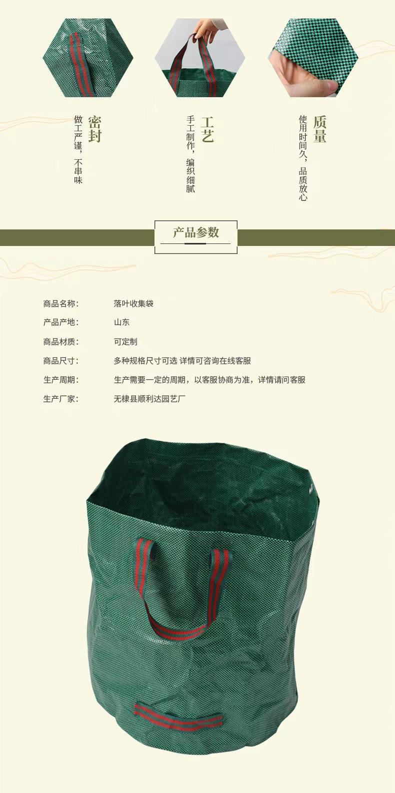 Saco de Folhas Impermeável de Grande Capacidade, Saco Tecido para Jardim, Saco para Coleta de Ervas Daninhas e Lixo ao Ar Livre, Material Ecológico