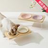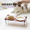 Tigela de cerâmica francesa para gatos Tigela para animais de estimação Tigela de comida para gatos de grande capacidade e antidetonante Proteção para coluna cervical Tigela de água Tigela dupla para cães