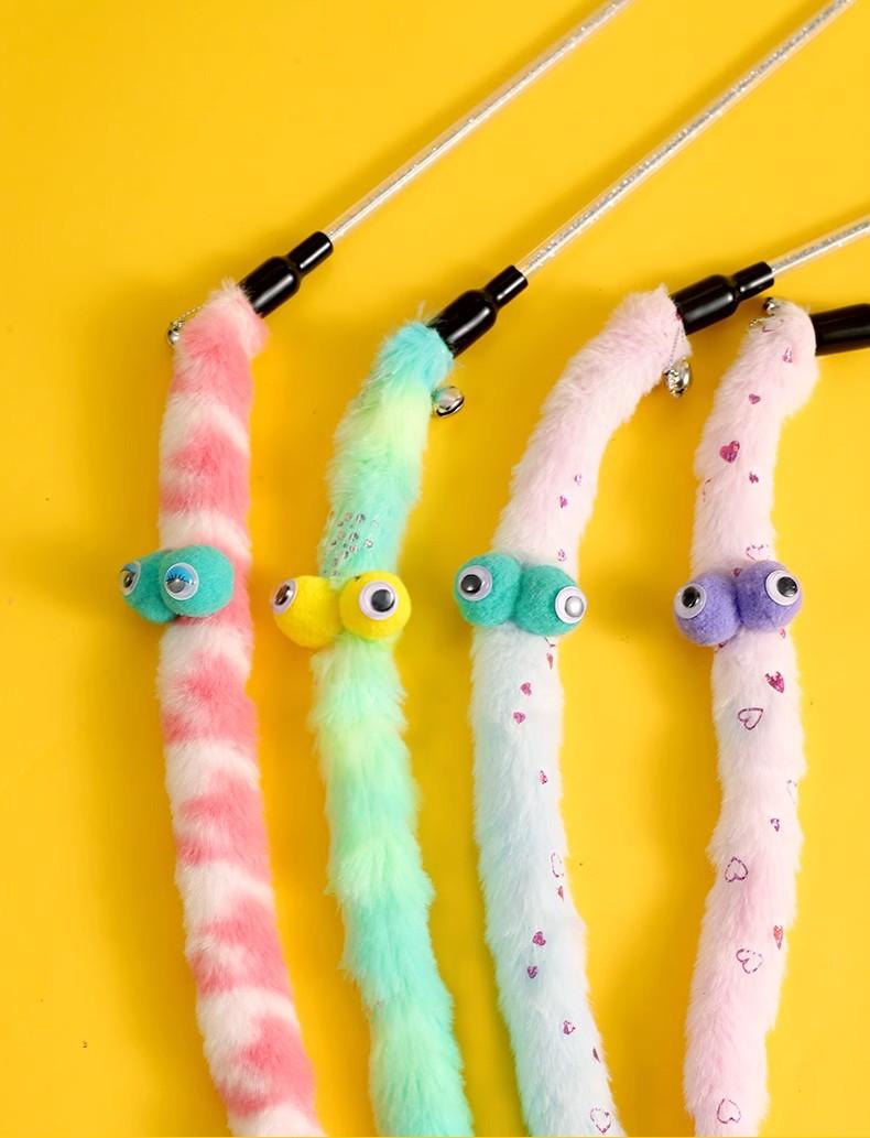 Compre Lagarta de Olhos Grandes Varinha de Gato Engraçada Pelúcia Longa Varinha Longa Sino Gato Auto-Prazer Aliviar Tédio Brinquedo de Catnip Resistente a Mordidas no atacado no Joom.pro