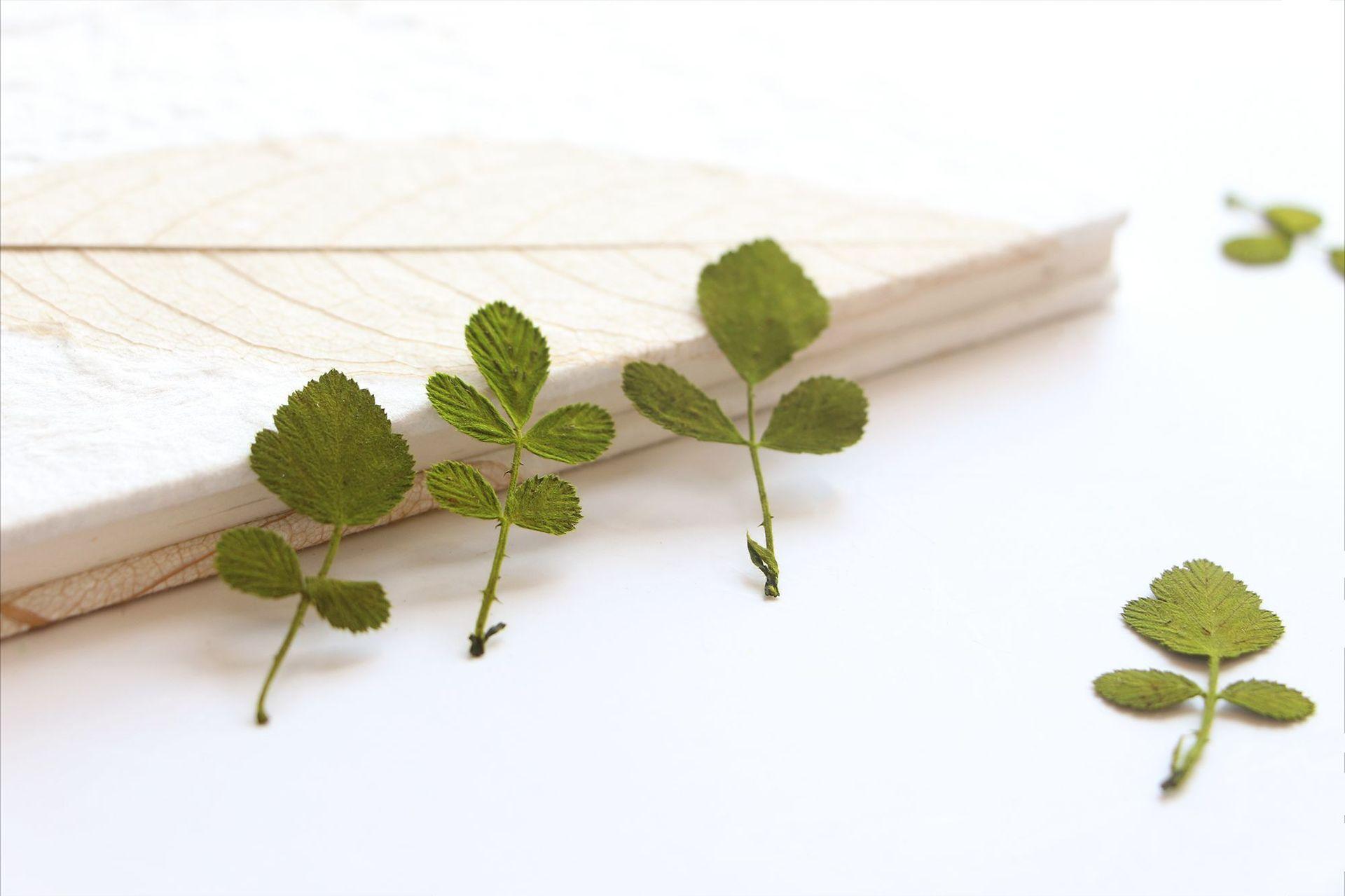 Informações do produto: Folha de morango silvestre flor seca flor prensada