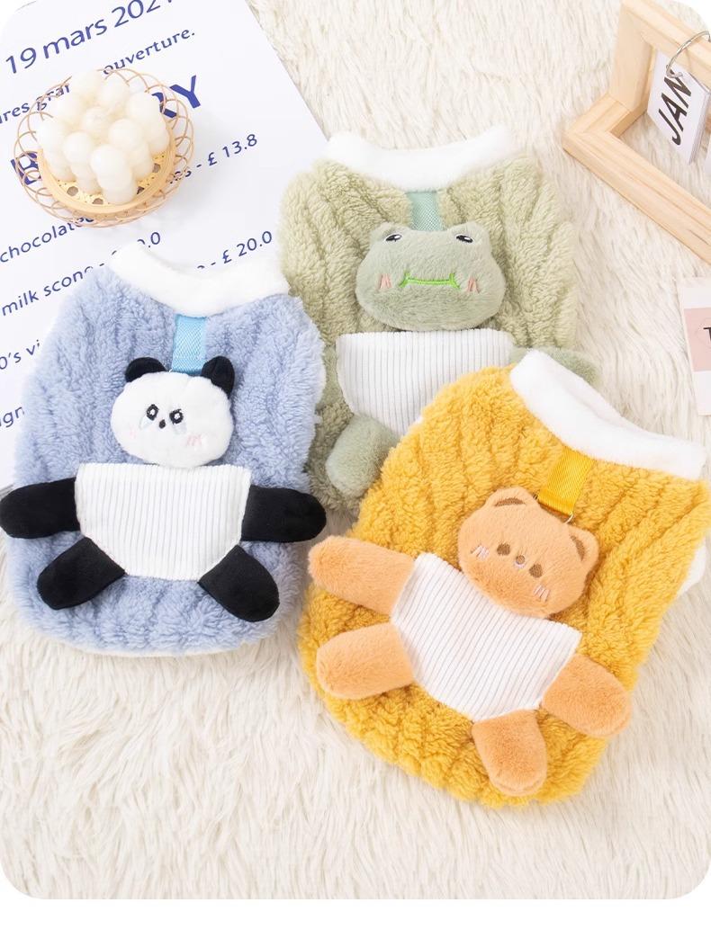 Suéter japonês e coreano fofo de outono e inverno para cachorro e urso, camisa de base, duas peças de lã para gato, roupas para cachorro de estimação