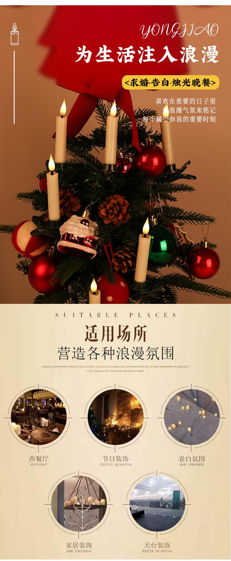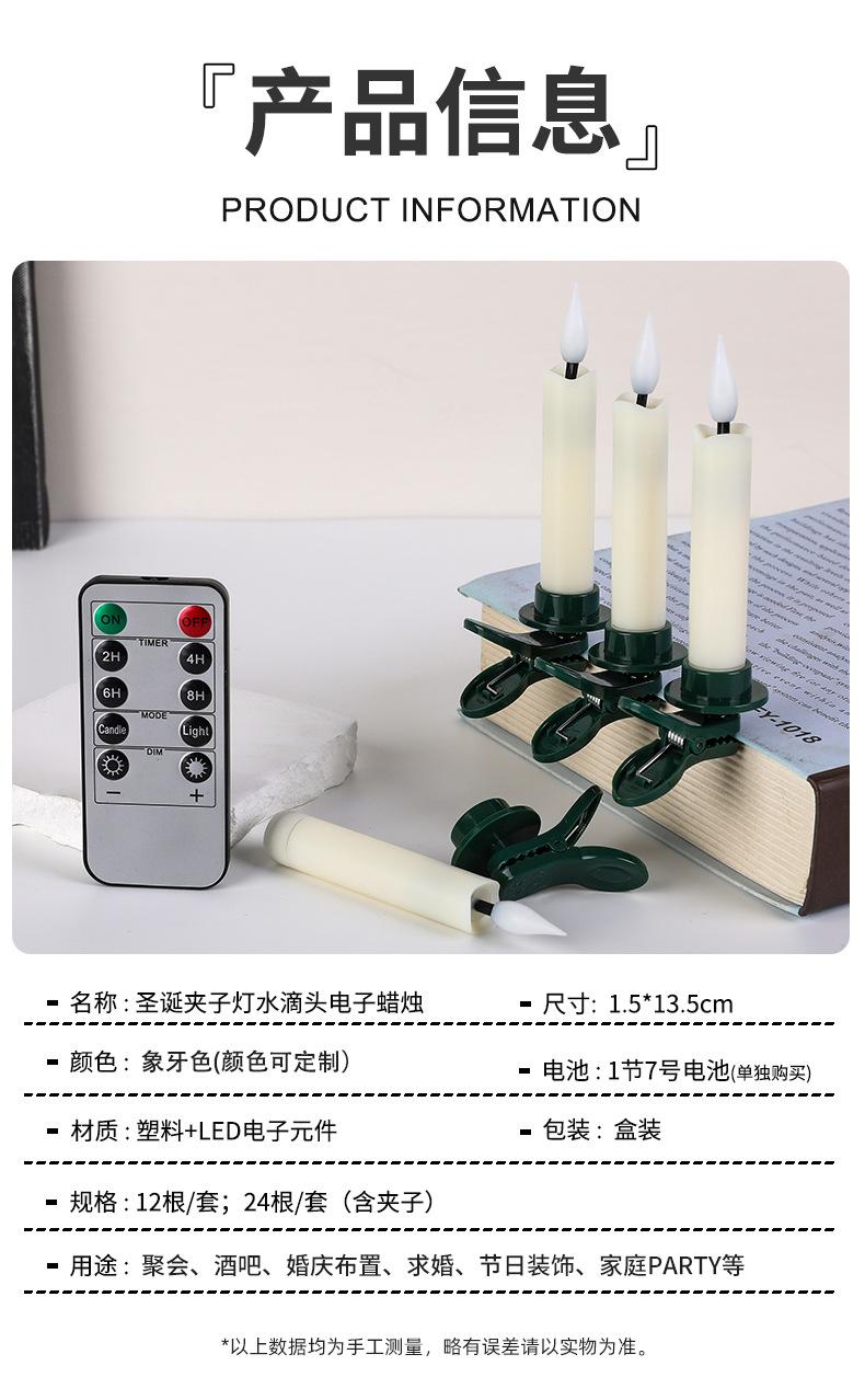 Velas Eletrônicas de Dia dos Namorados Transfronteiriças Decoração de Natal Luzes de Clipe Cabeça de Gota de Água Velas de LED Simuladas com Ambiente