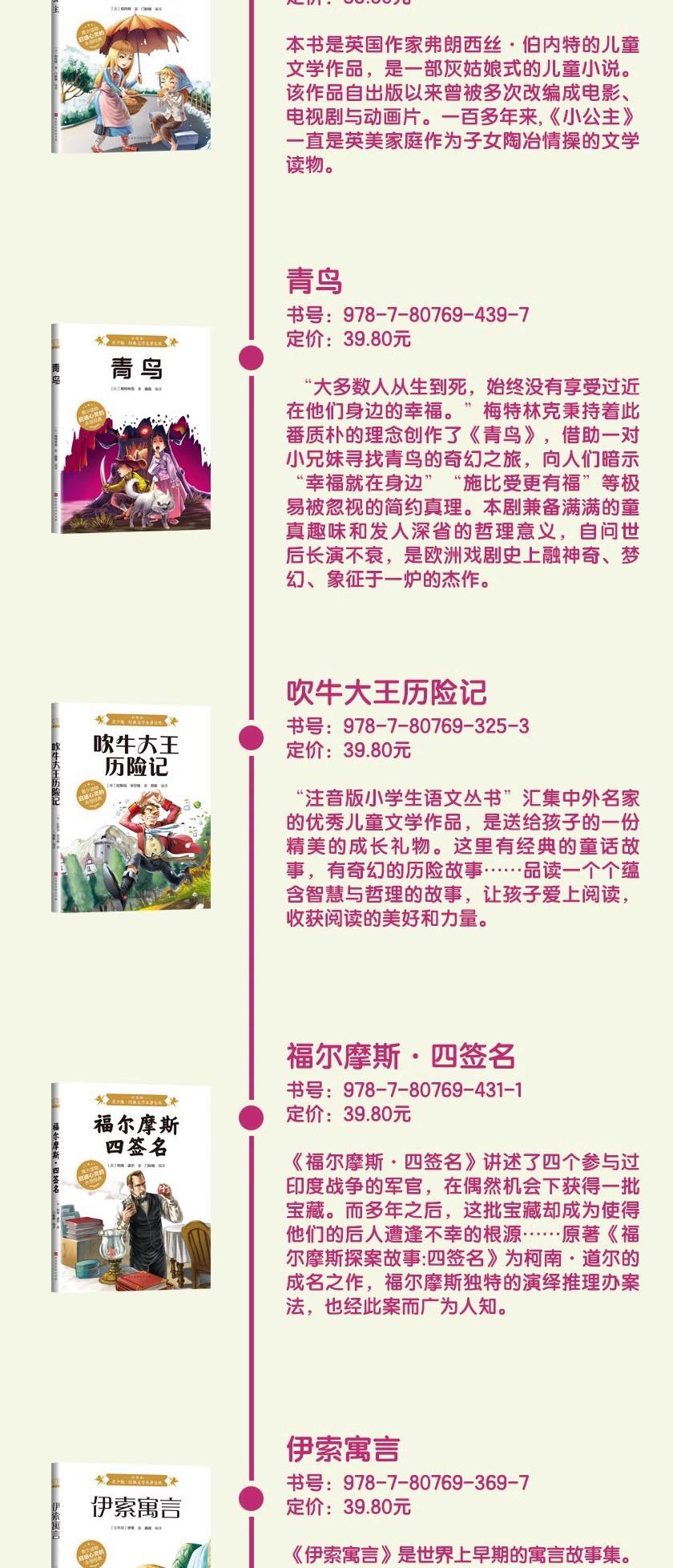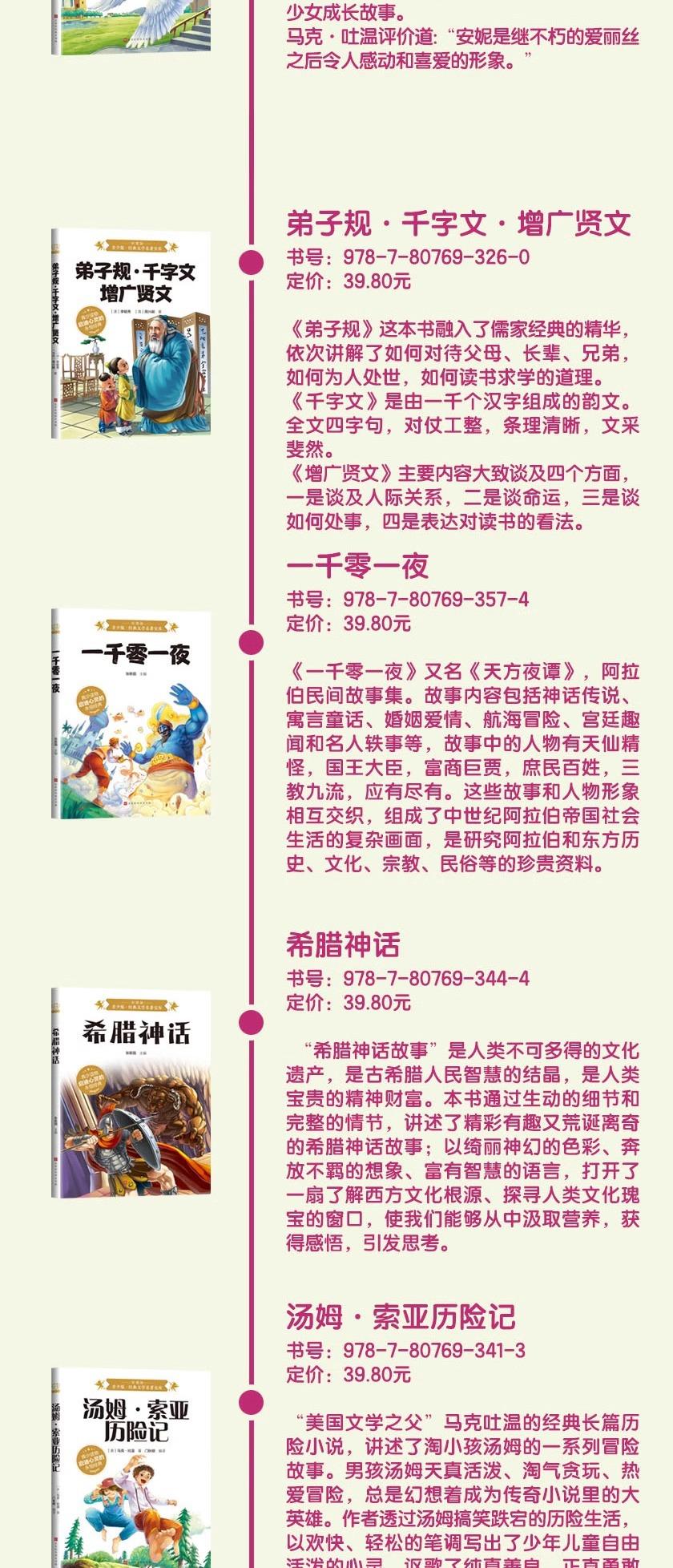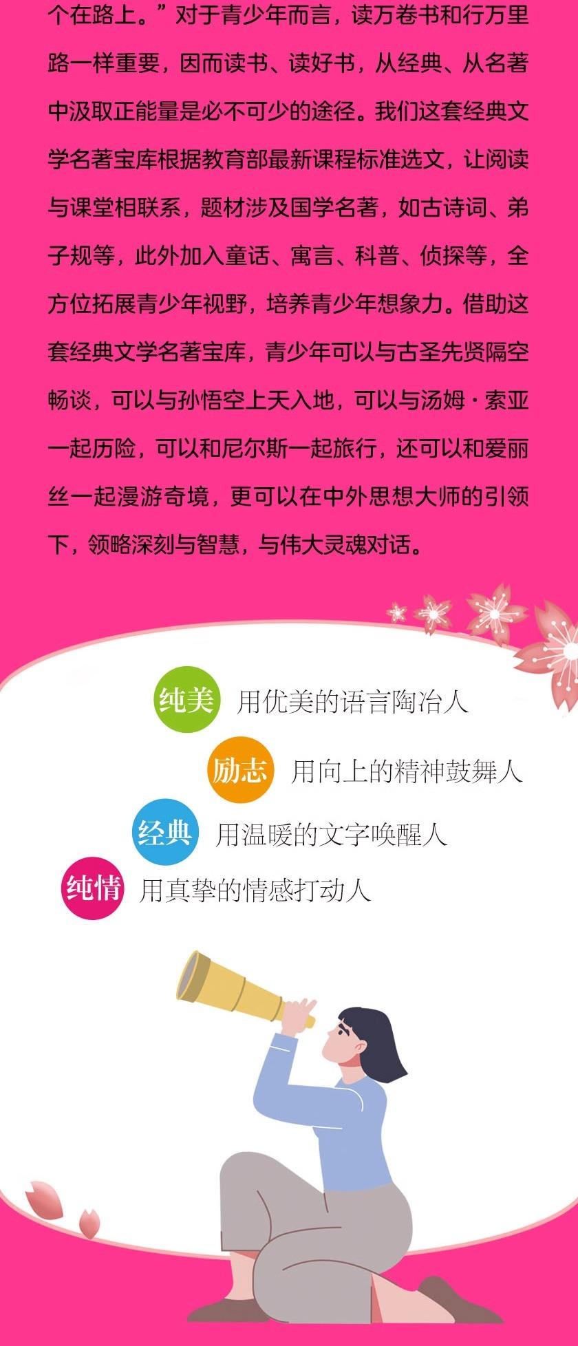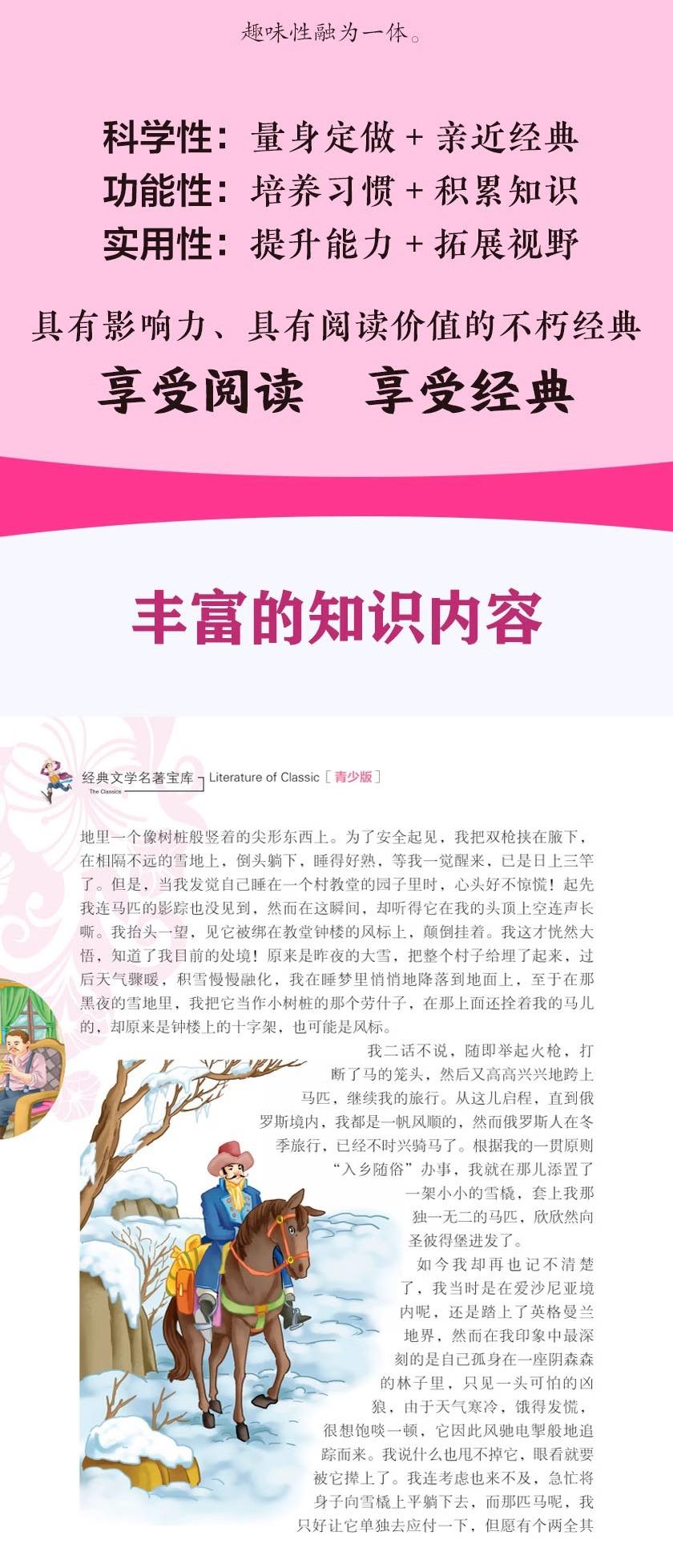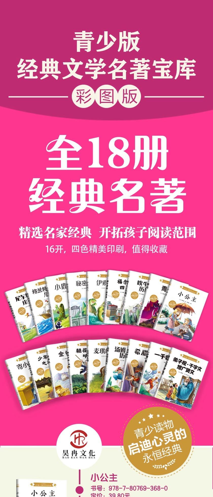 Um conjunto completo de 19 imagens coloridas de obras-primas literárias clássicas do mundo são livros de leitura extracurricular para alunos do ensino fundamental, nas séries três, quatro, cinco e seis.