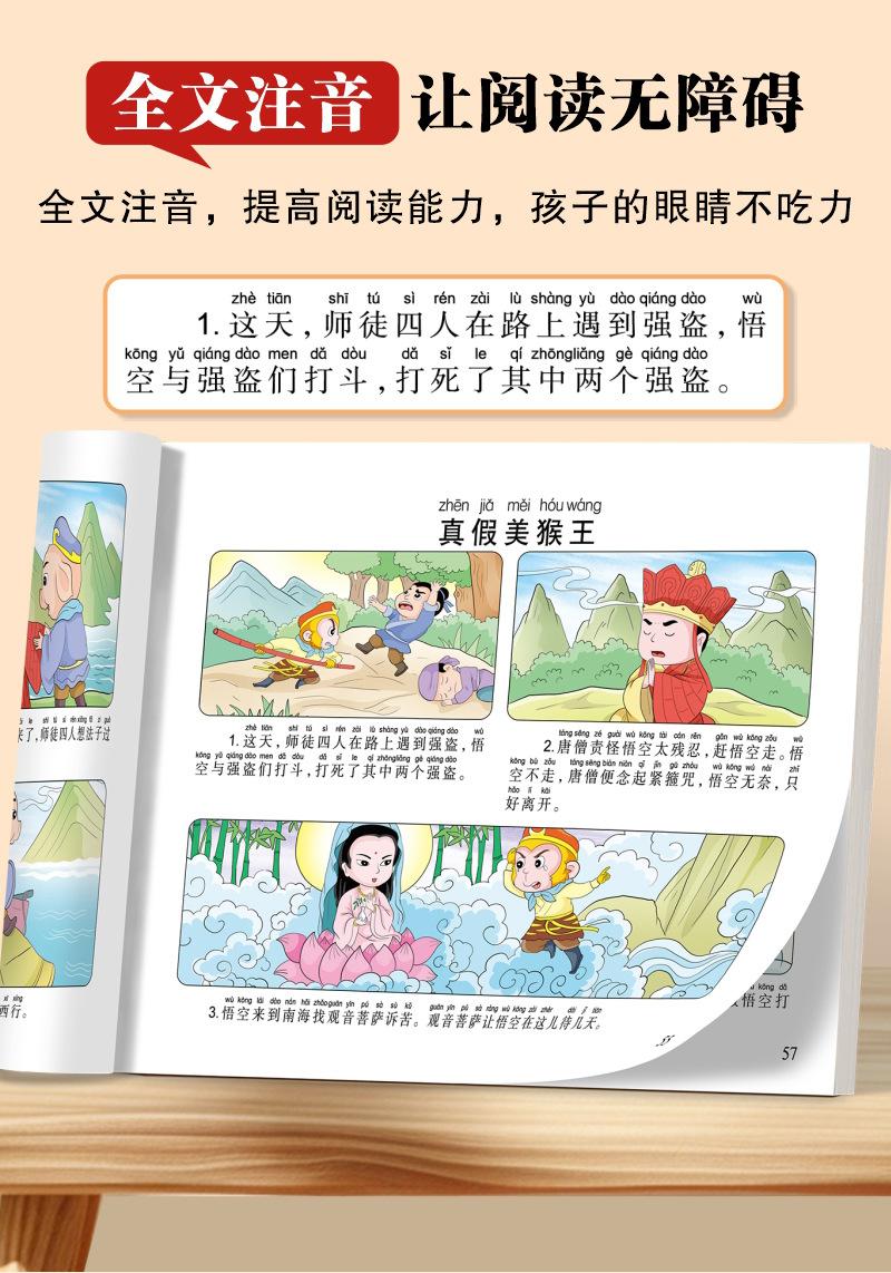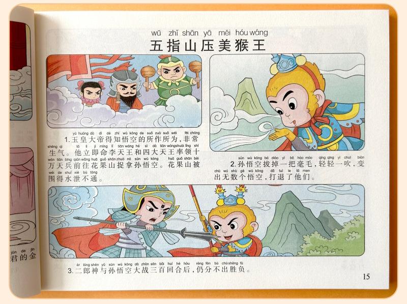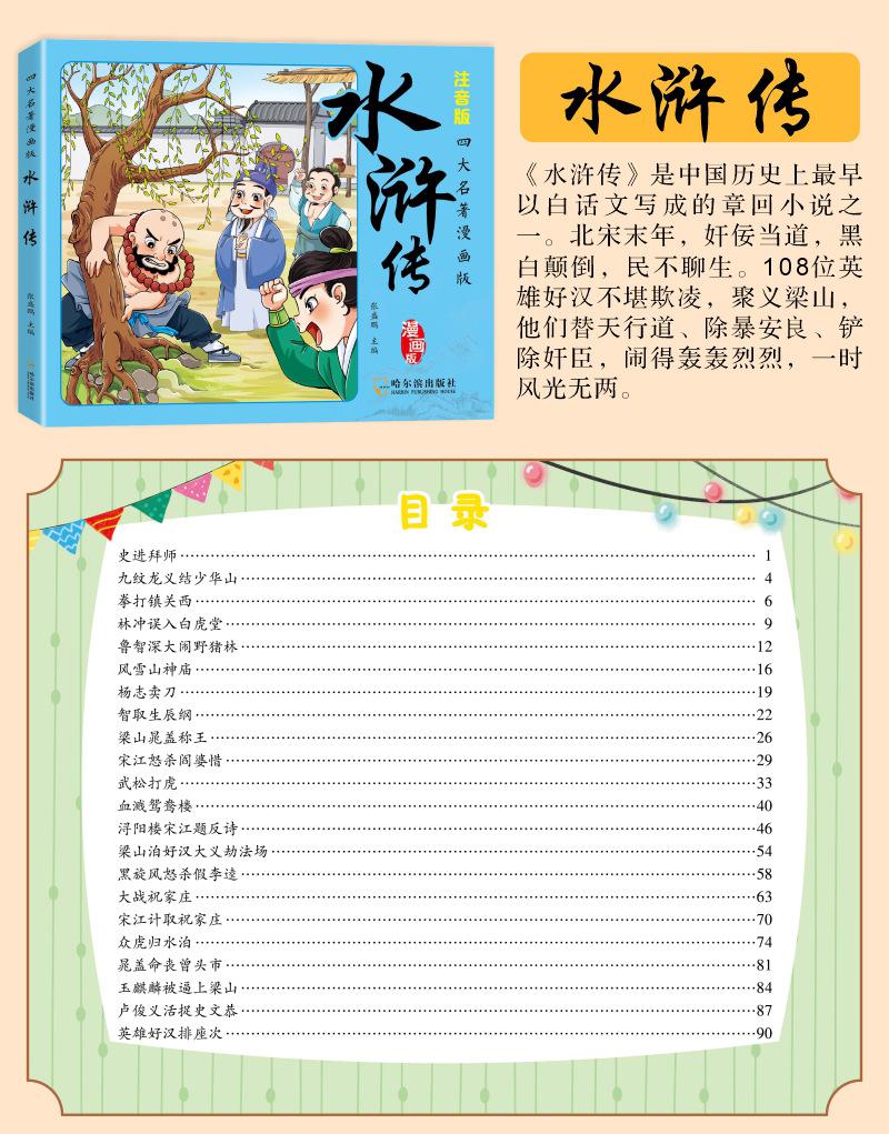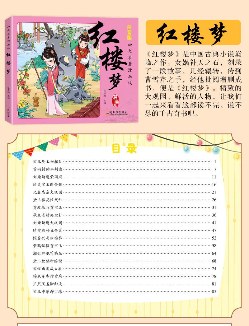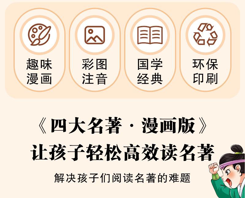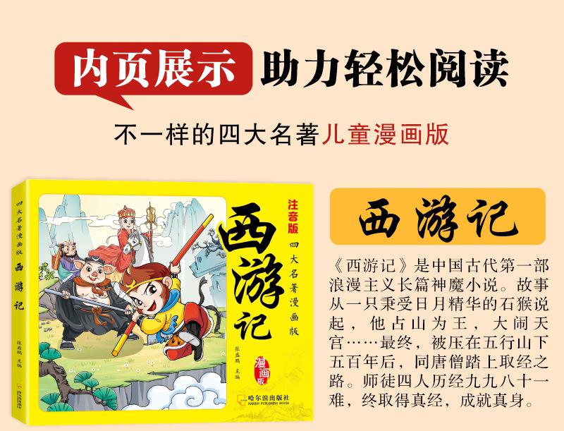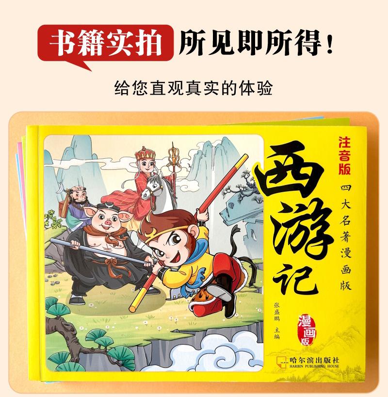 Versão em desenho animado das quatro obras-primas Histórias em quadrinhos Versão para alunos do ensino fundamental Versão fonética do Romance dos Três Reinos Margem da Água Sonho das Mansões Vermelhas Viagem ao Oeste