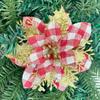 Flor de Natal transfronteiriça decoração de Natal tecido xadrez simulação flor decorações para árvores de Natal enfeites de Natal atacado