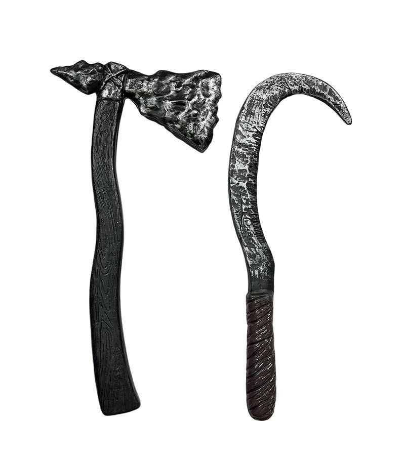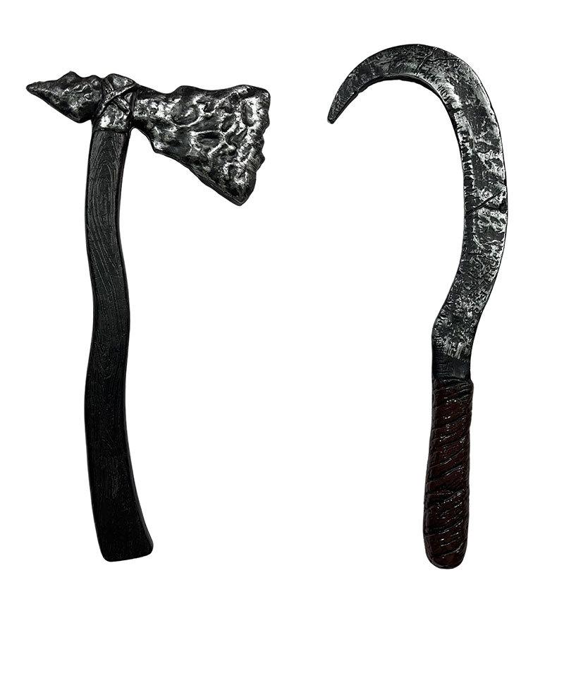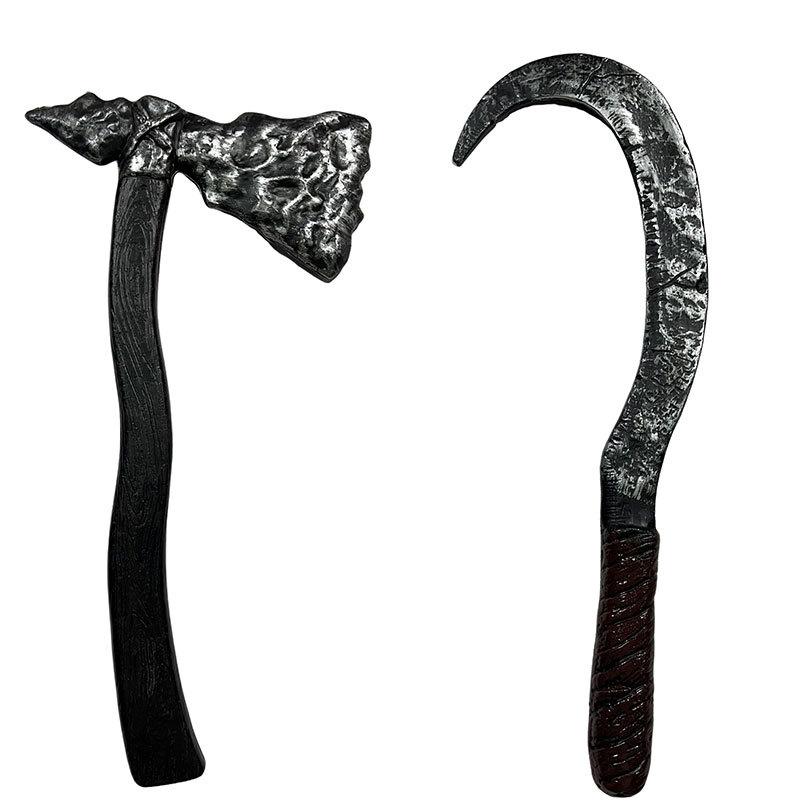 Equipamento de arma de Halloween Adereços de gancho de machado de plástico Adereços de crânio alienígena Foice da morte Crânio Machado fantasma