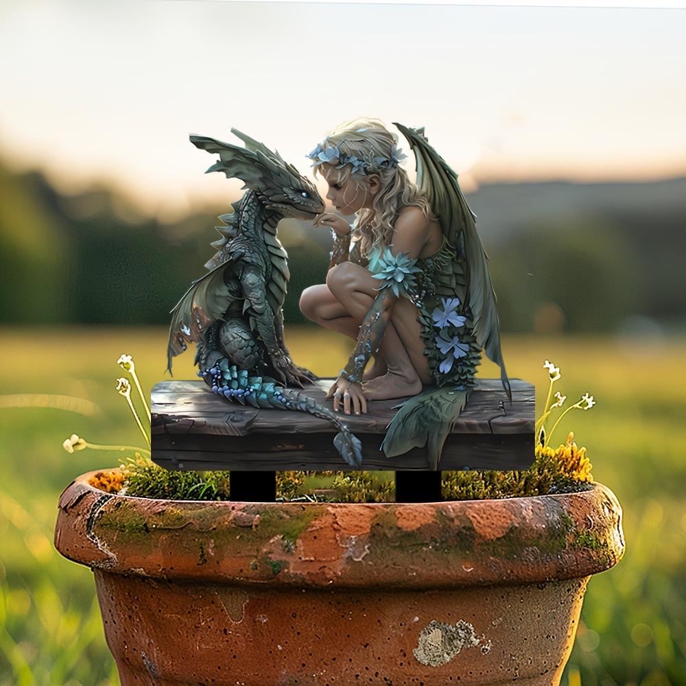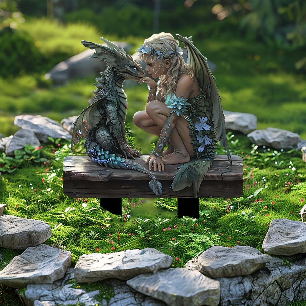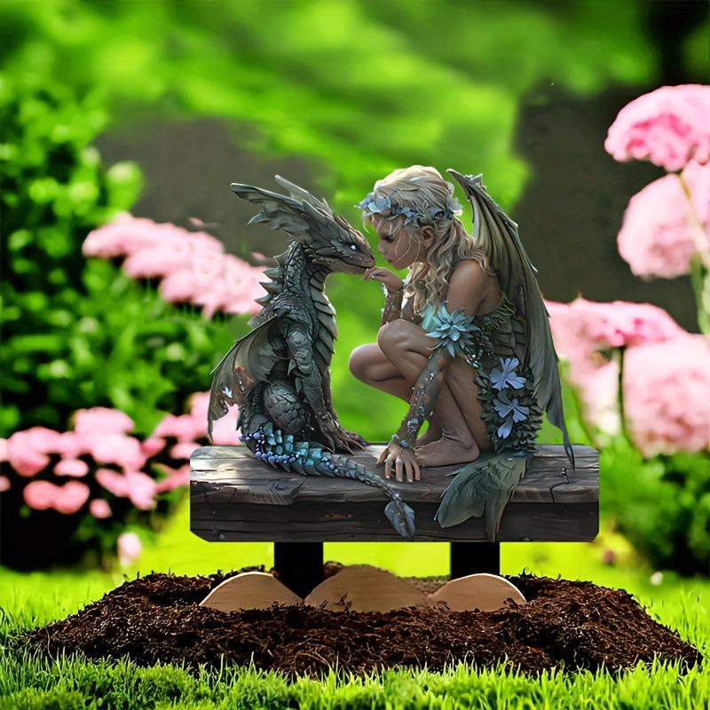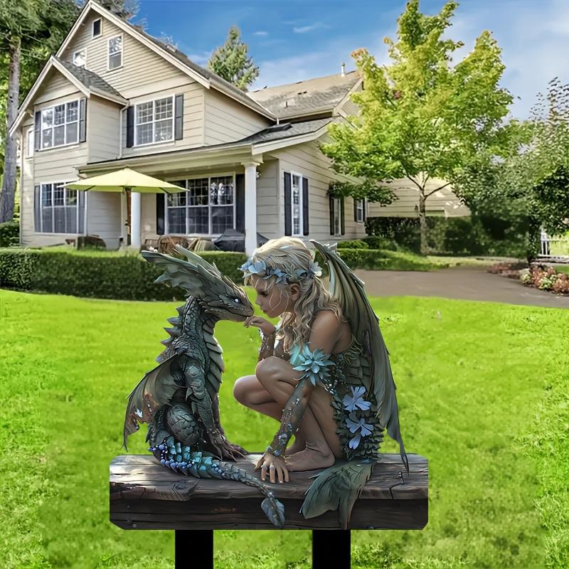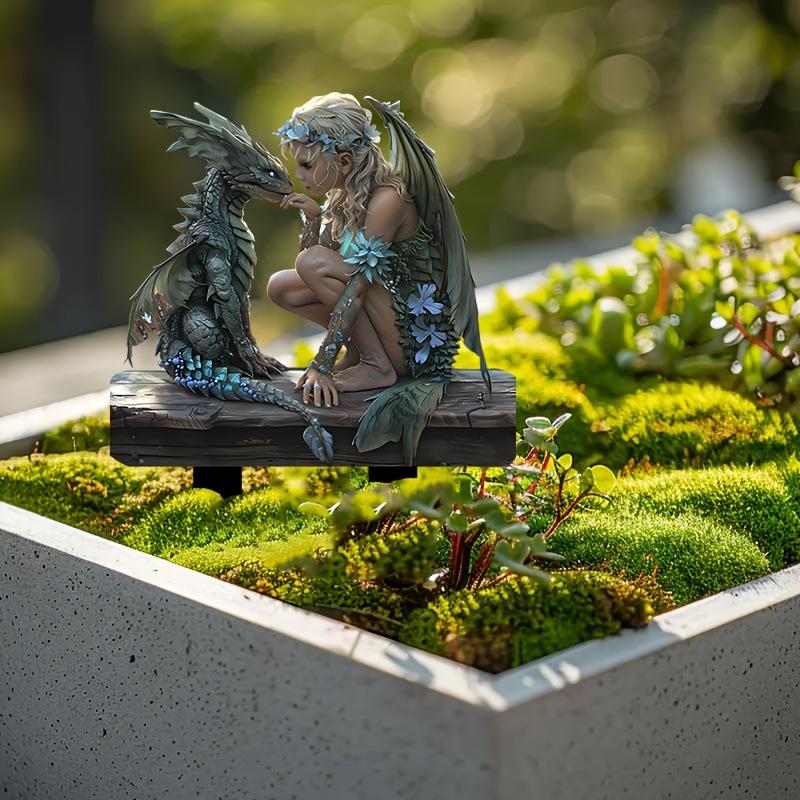 Encantador dragão transfronteiriço, fada domadora e dragão, jardim, pilha, arek, à prova d'água, resistente ao desgaste, pátio, pingente de chão, ornamentos