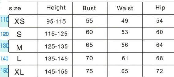 Children (3~8 years old, 100~140cm)