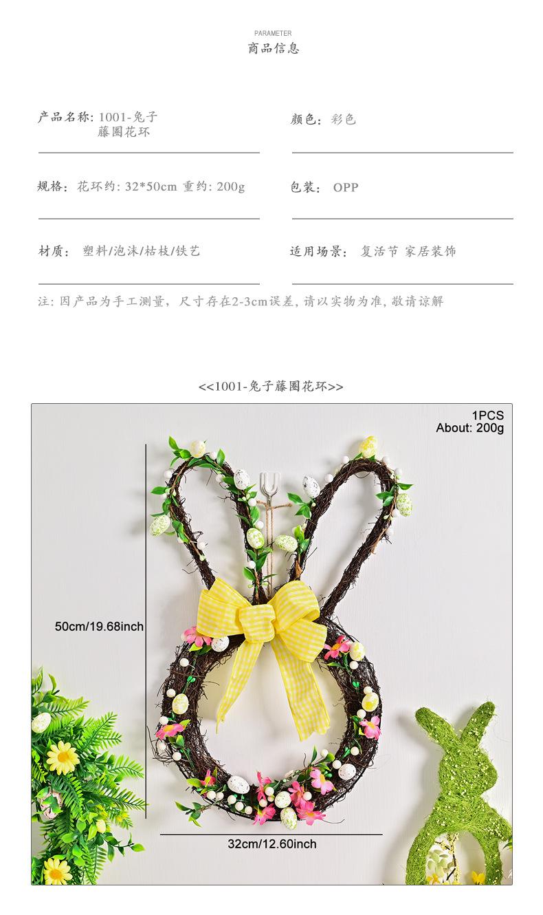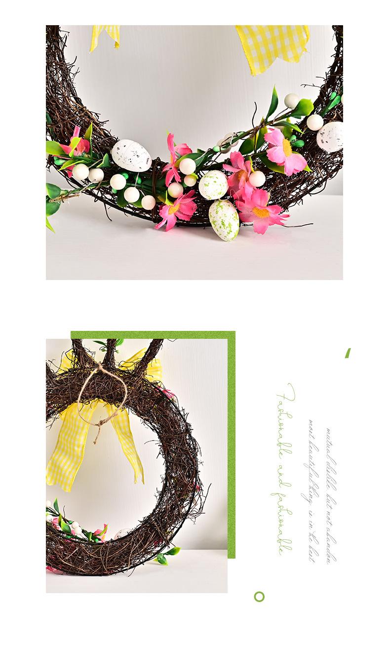Cabeça de coelho de Páscoa transfronteiriça em forma de baga, decoração de ovo de vime natural, decoração de fundo para porta de ovo, decoração para pendurar na parede ao ar livre