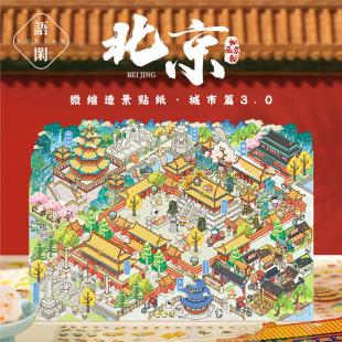 Yuxian pet miniatura adesivo grande paisagem Edição Cidade 3.0 Pequim 3D tridimensional casas empilhadas adesivo de diário infantil