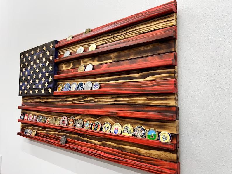 Expositor de moedas comemorativas, expositor de medalhas de pêndulo de mesa, expositor de moedas de madeira simples, expositor de moedas multicamadas