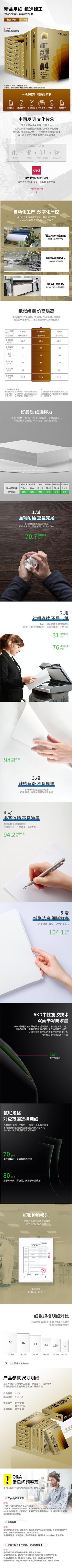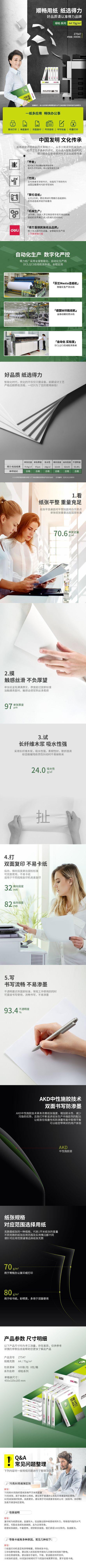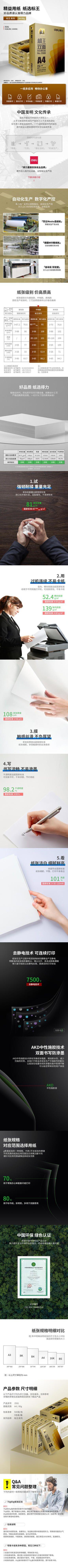 Deli Z7547 Green Cypress A4 Papel para cópia 500/pacote Papelaria Atacado Escritório Papel para impressão frente e verso 70g