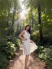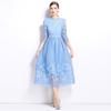 2024 outono novo europeu e americano francês temperamento palácio oco bordado com decote em V fino vestido sem mangas