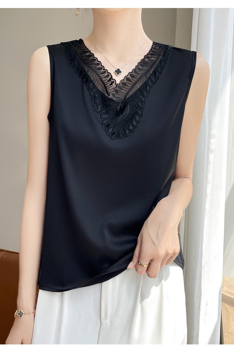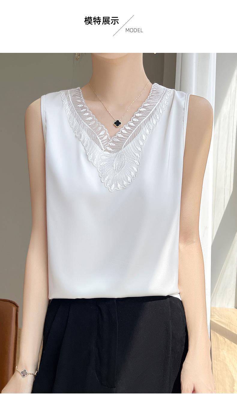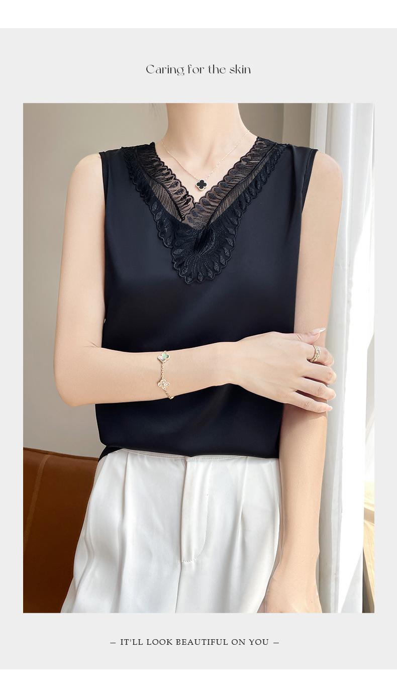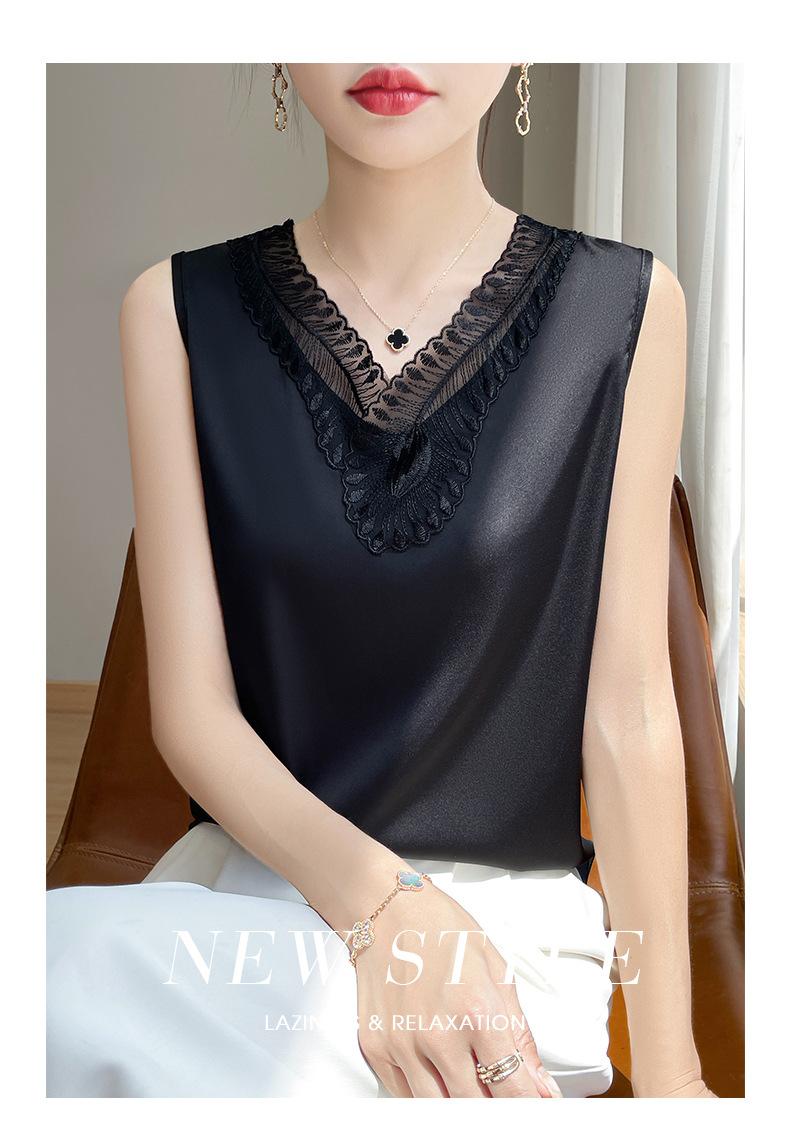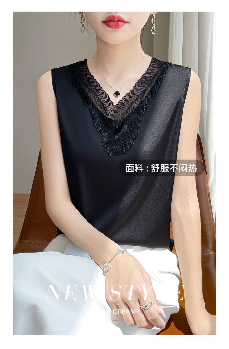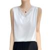 Verão 2024 Novo Transfronteiriço Regata Feminina Solta de Renda com Decote V Sem Mangas em Seda Gelo Cor Sólida