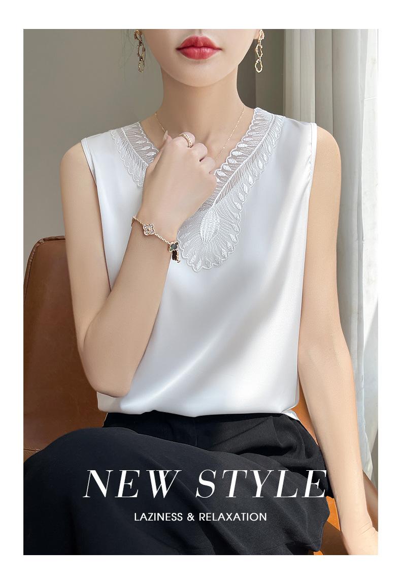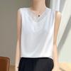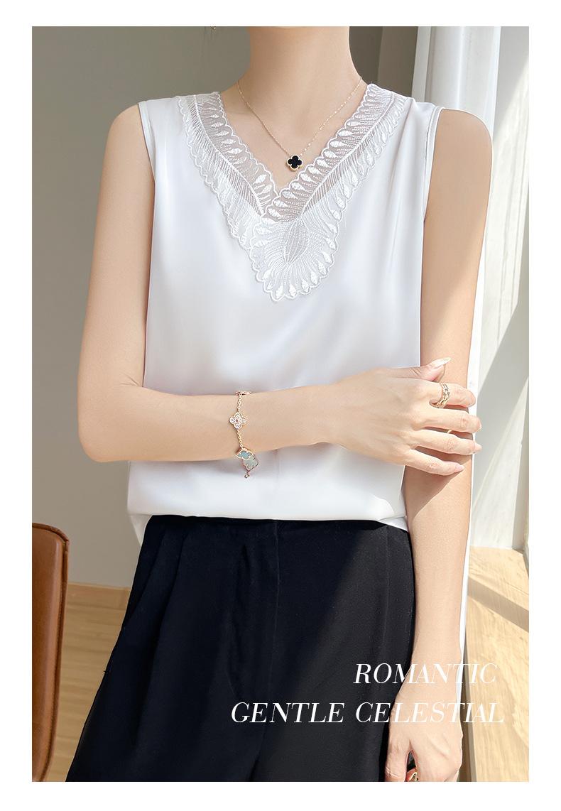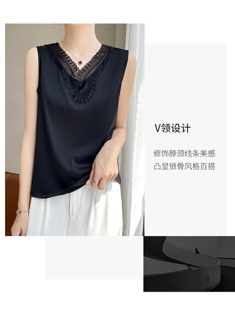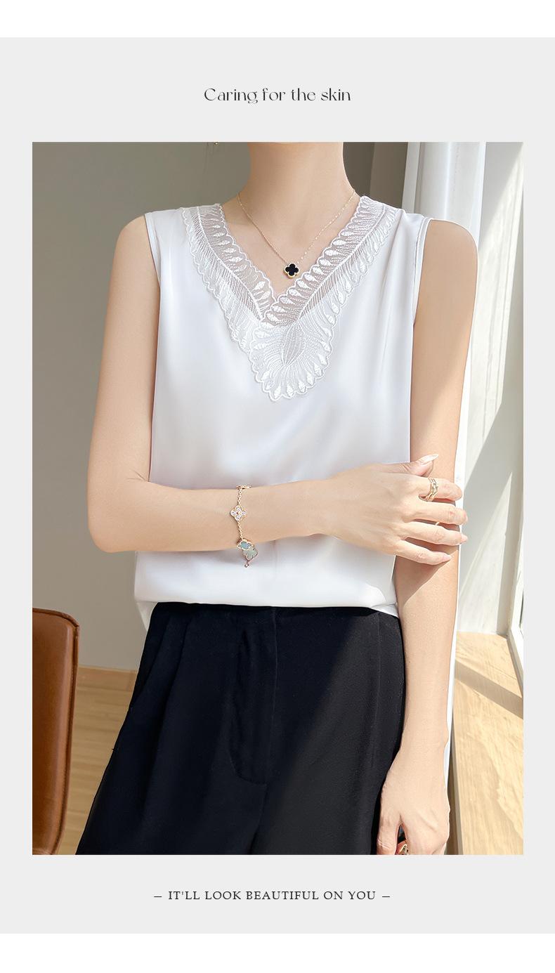 Verão 2024 Novo Transfronteiriço Regata Feminina Solta de Renda com Decote V Sem Mangas em Seda Gelo Cor Sólida