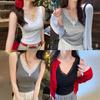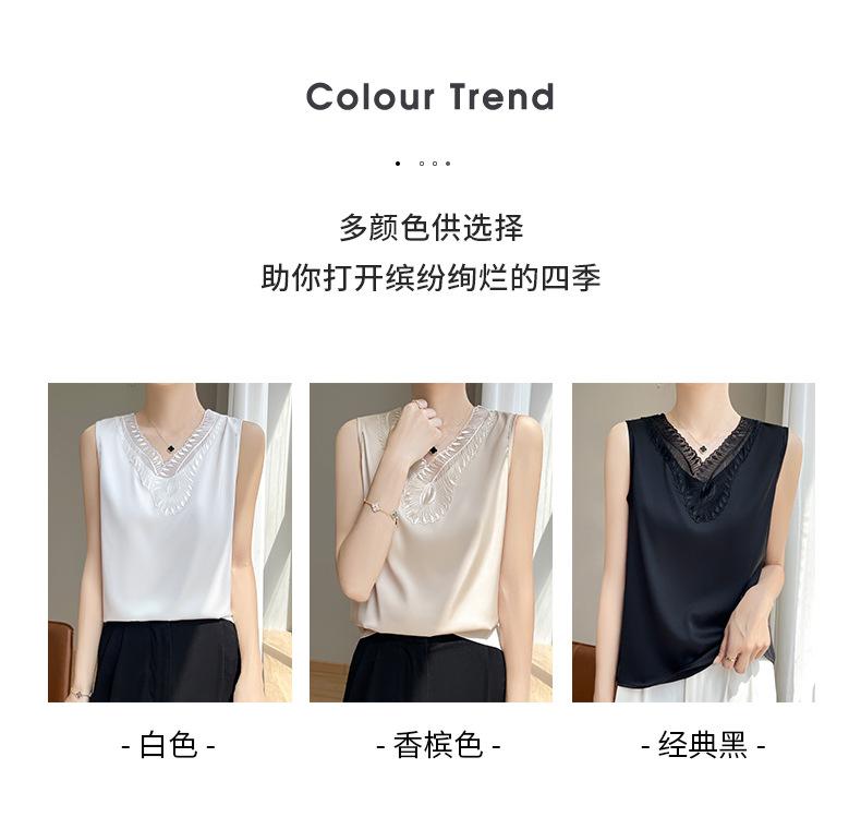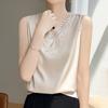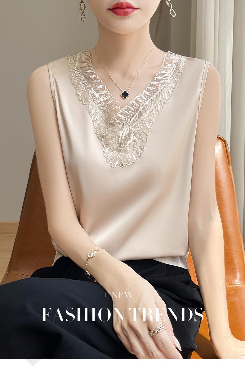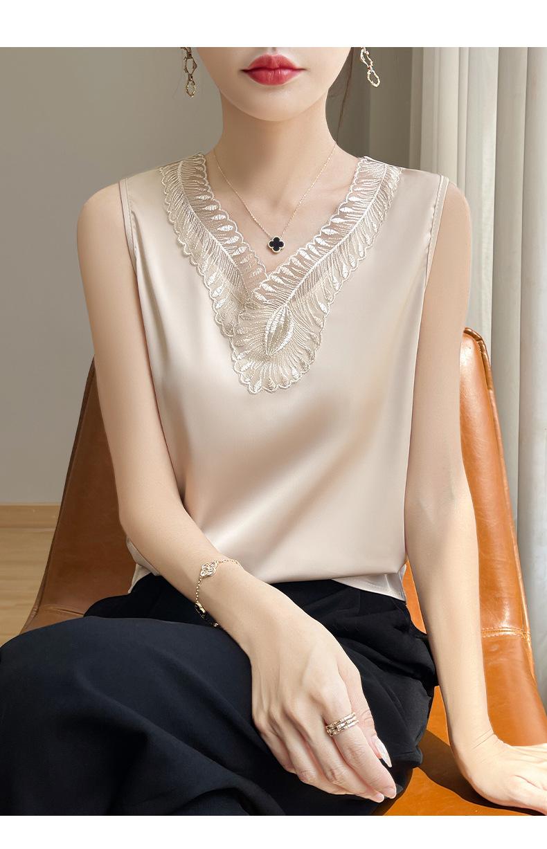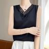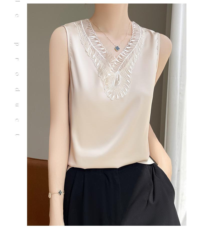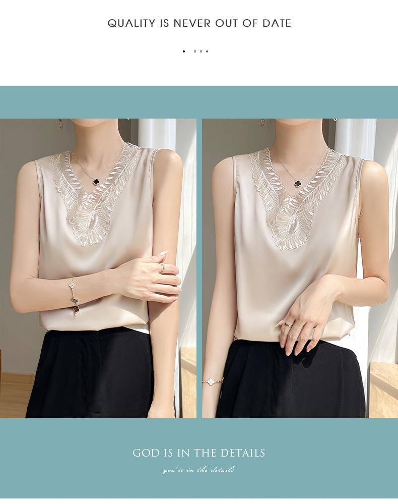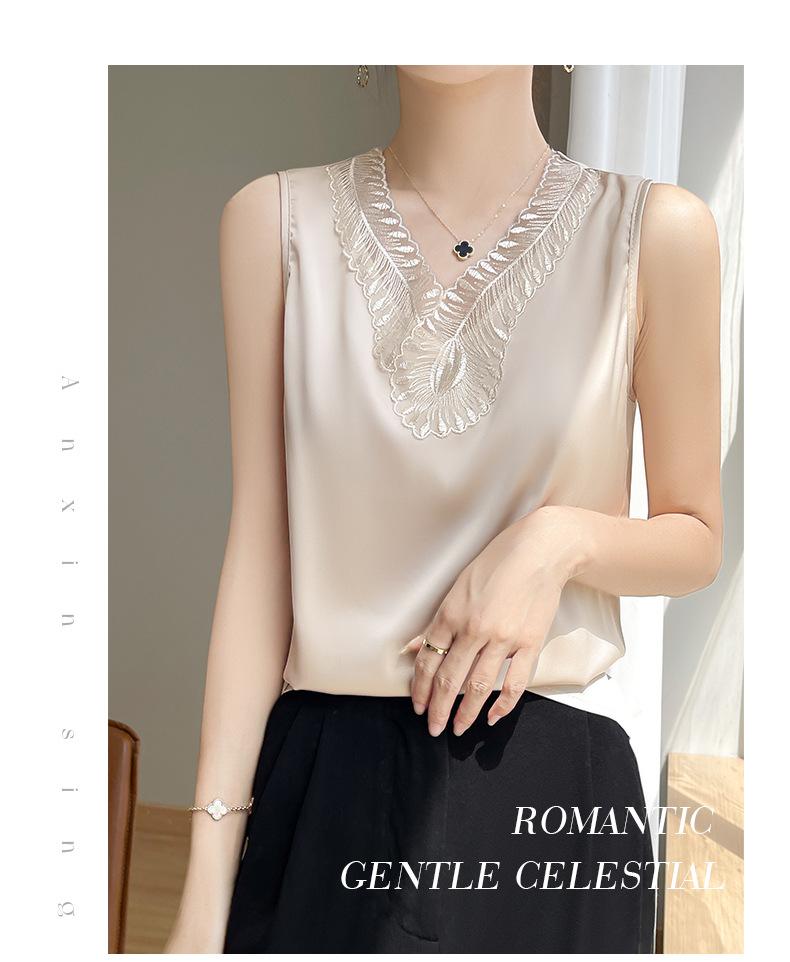 Verão 2024 Novo Transfronteiriço Regata Feminina Solta de Renda com Decote V Sem Mangas em Seda Gelo Cor Sólida