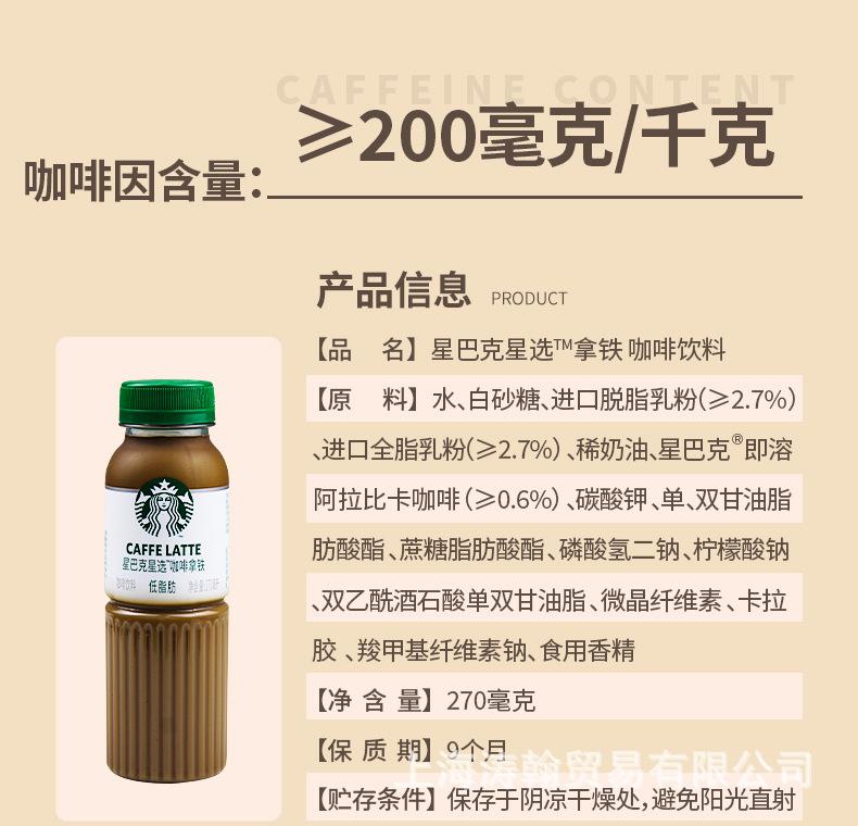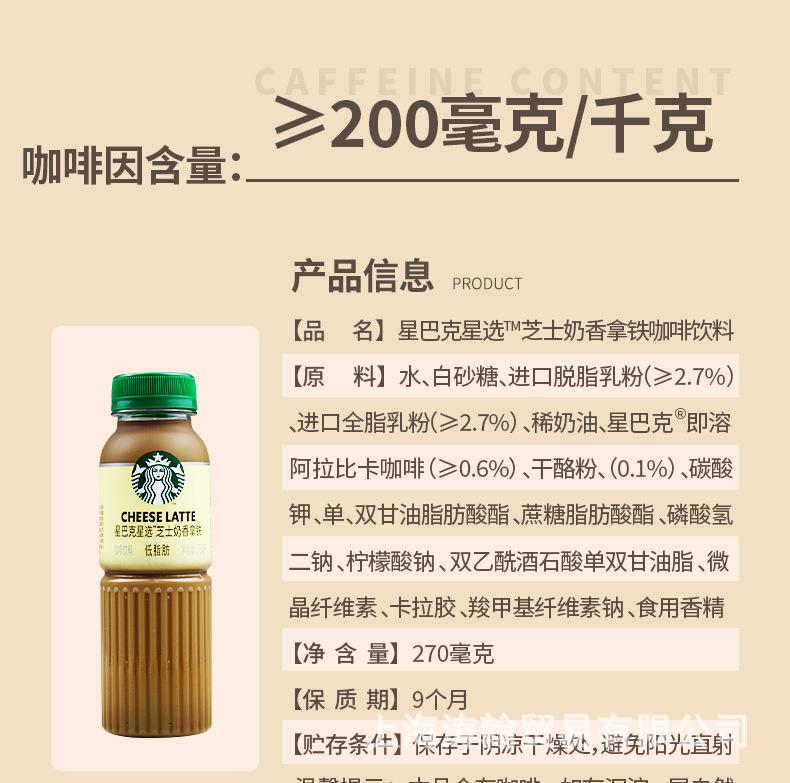 Starbucks Star Selection Latte Americano Bebida de Café Pronta para Beber Leite com Queijo Aroma 270ml*15 Garrafas Caixa Inteira Atacado Self-Service