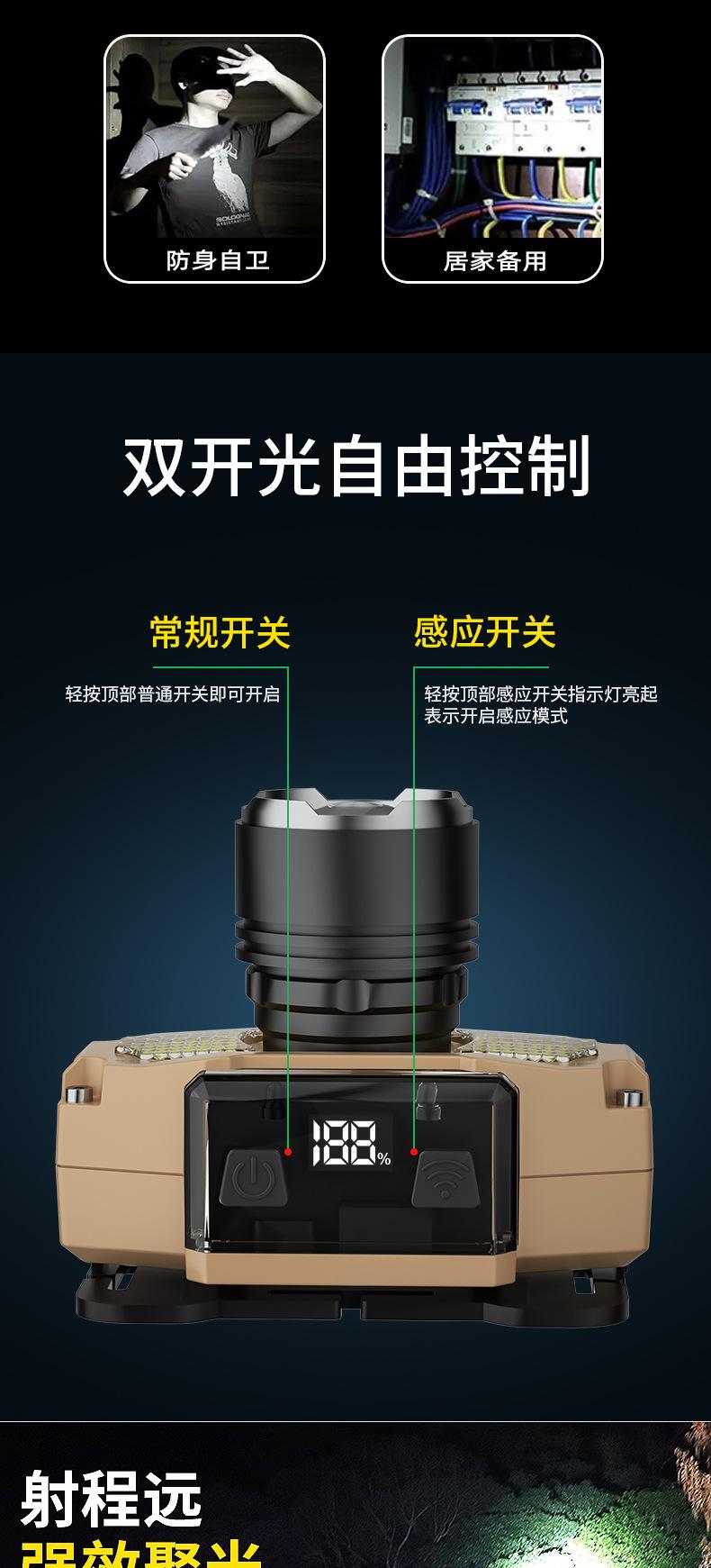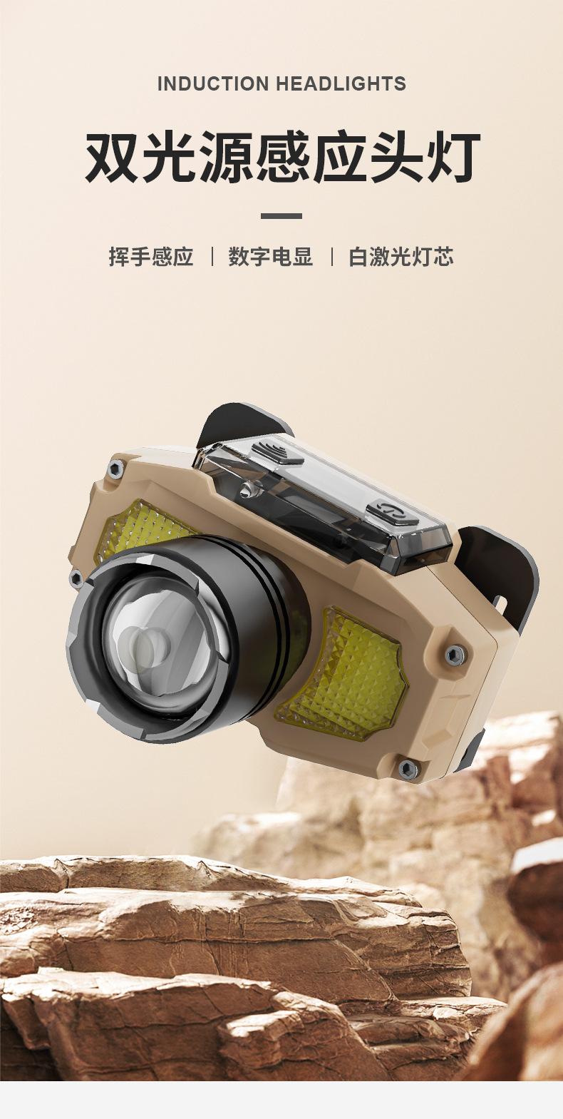 White laser zoom + digital display induction (built-in 1800mAh) endurance 3.5-8H, Three lights 1300 lumens + d...