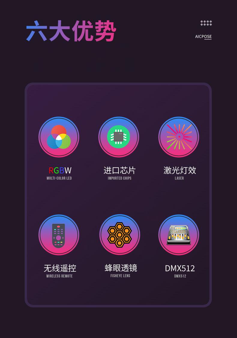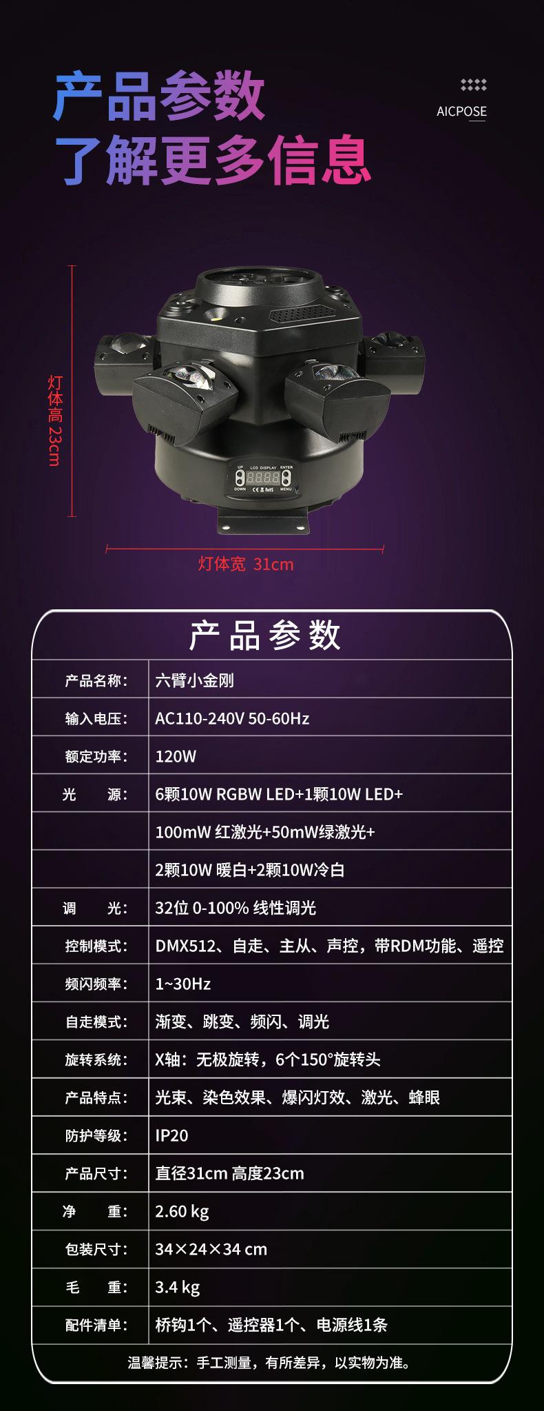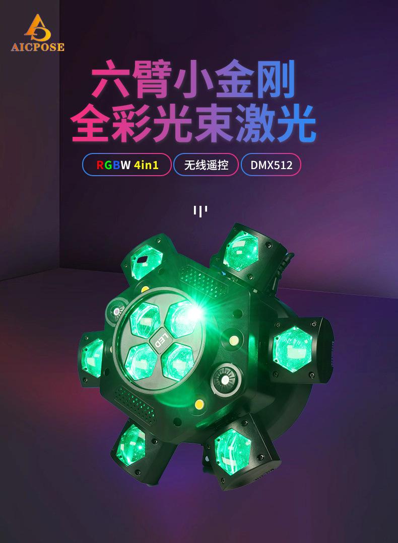 Nova barra de luz laser King Kong pequena com seis braços e olho de abelha, barra transparente, luz atmosférica, KTV, pequeno King Kong, redemoinho, cabeça de sacudir