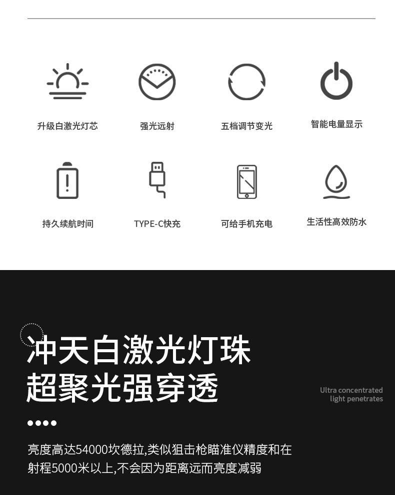Nova lanterna multifuncional externa laser branco super longo alcance brilhante alta potência iluminação longa resistência portátil emergência