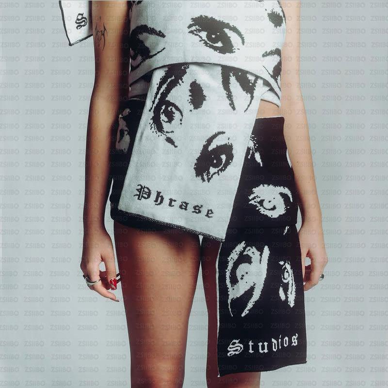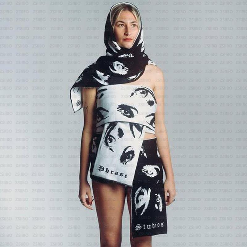 Comércio exterior europeu e americano 2025 inverno e primavera escuro punk high street olhos alfabeto jacquard gótico quente cachecol à prova de frio