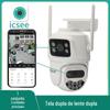 Câmera de Vigilância Icsee Gunball Tela Dupla Externa para Casa Celular Externa Visão Noturna Câmera Dupla