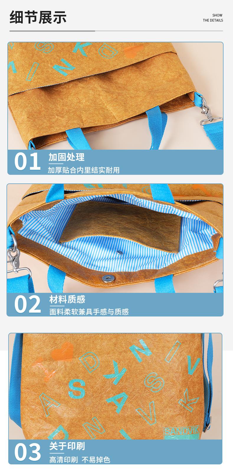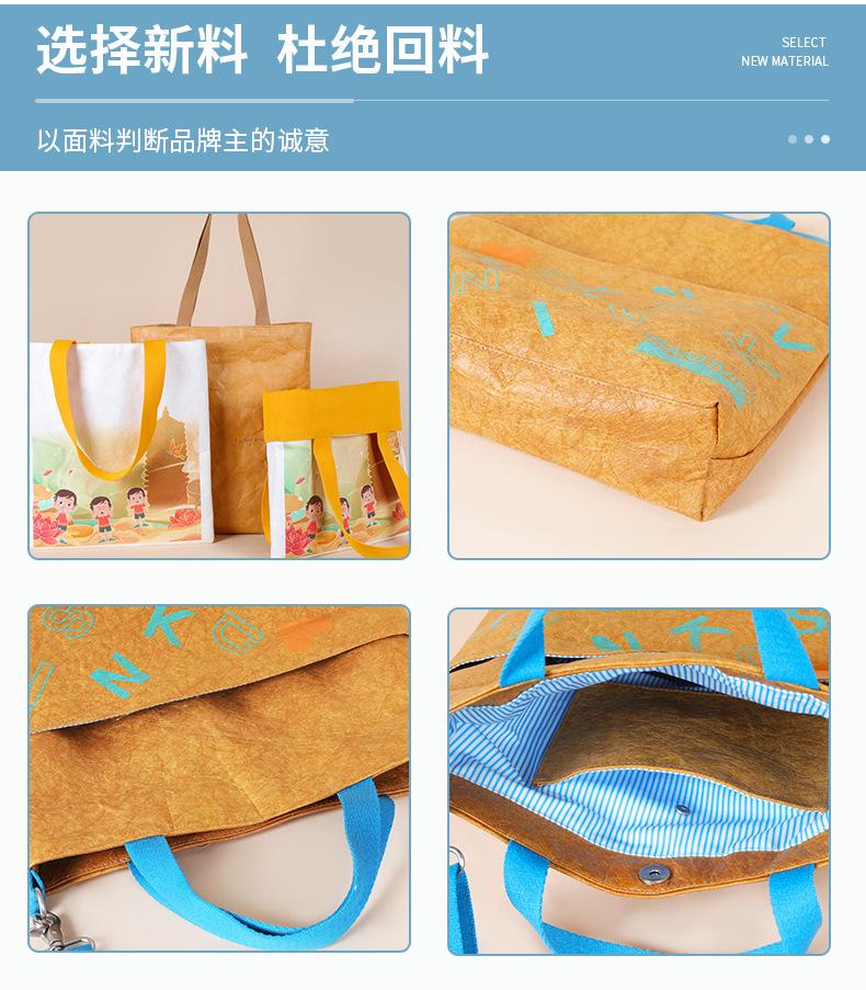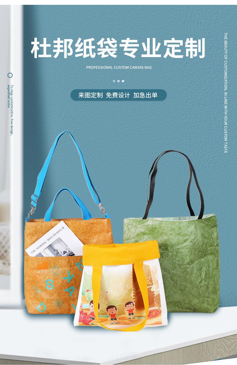 Sacola de papel DuPont personalizada, criativa, à prova d'água, portátil, lavável, de papel Kraft, sacola de compras, logotipo para impressão