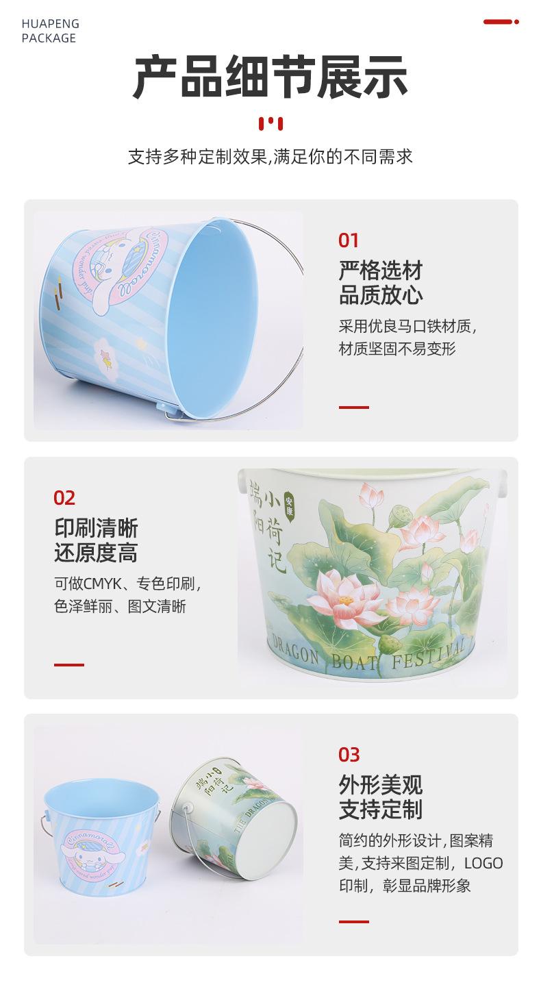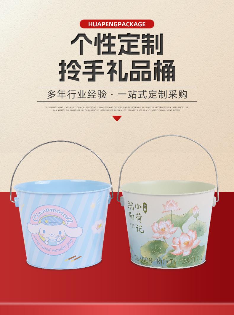 Alça de produção de fábrica Balde de ferro para presente Padrão criativo Balde de pipoca Doces Lanches Balde de folha de flandres Balde de gelo
