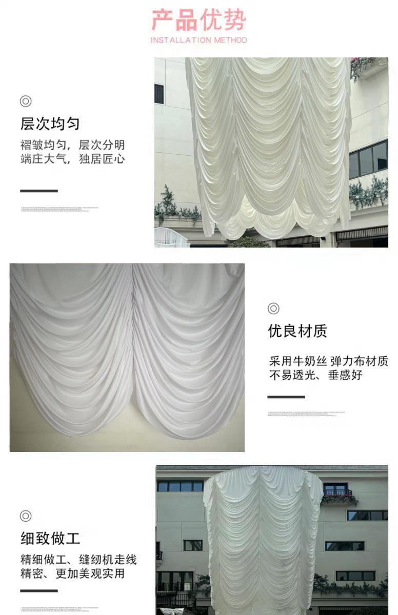 Véu de Tecido para Casamento Cortina de Fundo para Palco de Casamento Cortina Tecido Elástico de Seda Leite para Casamento Pés de Galinha Decorativos