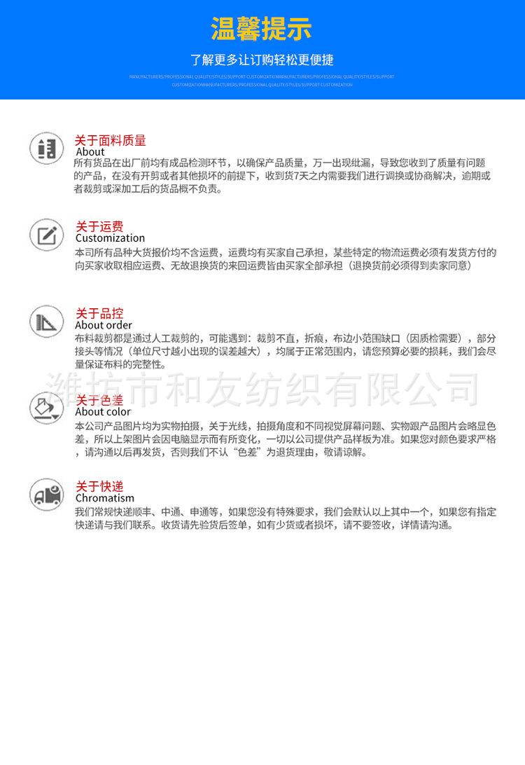 A Weifang Heyou Textile Co., Ltd. está disposta a cooperar sinceramente com clientes novos e antigos, seguir a tendência dos tecidos para roupas e fornecer tecidos para roupas confortáveis, generosos e elegantes para consumidores em todo o mundo!