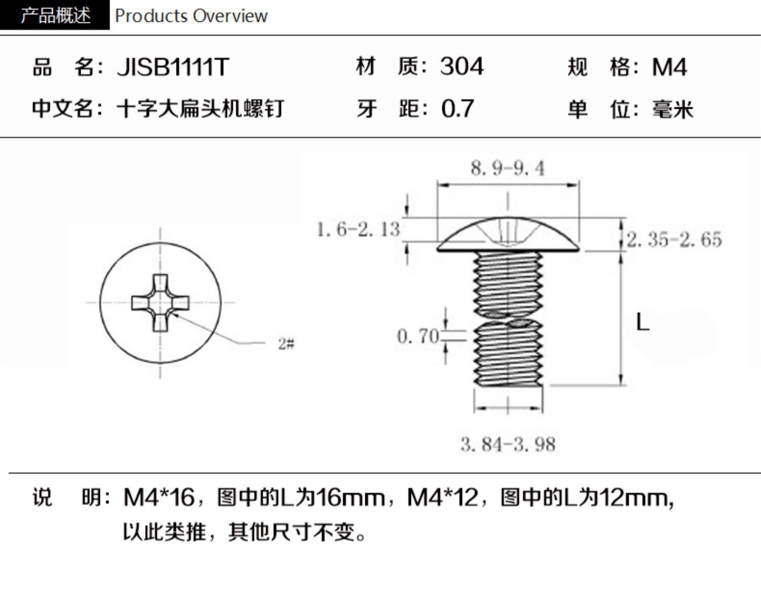 M2*3, M2*4, M2*5, M2*6, M2*8, M2*10, M2*12