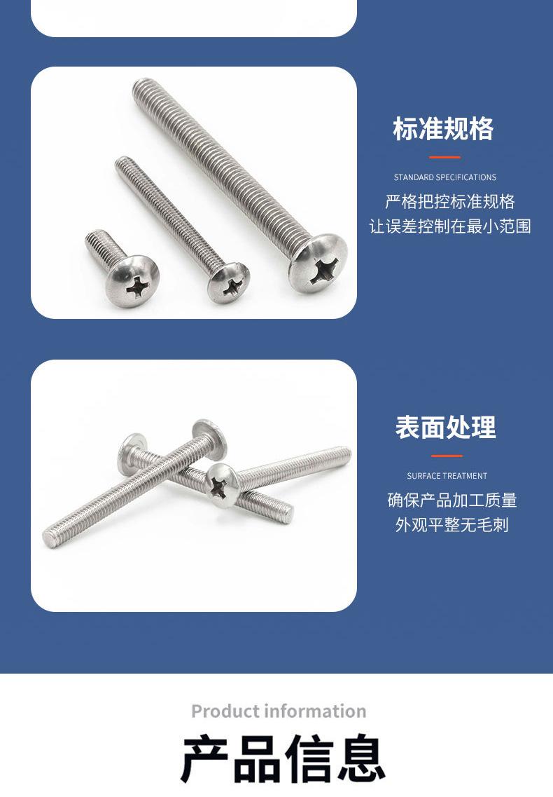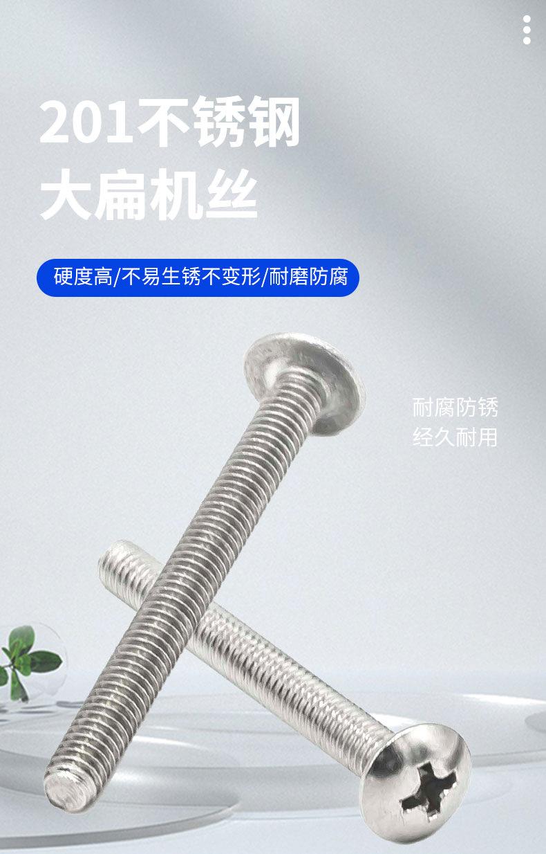 201 aço inoxidável cruz slot grande cabeça plana máquina de fio TM cogumelo guarda-chuva cabeça parafuso cabeça redonda plana M3M4M5M6M8