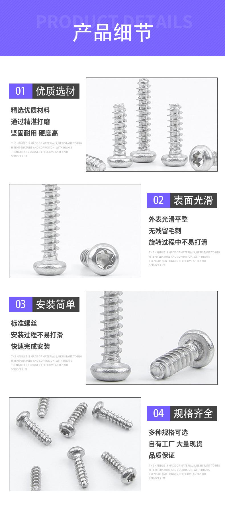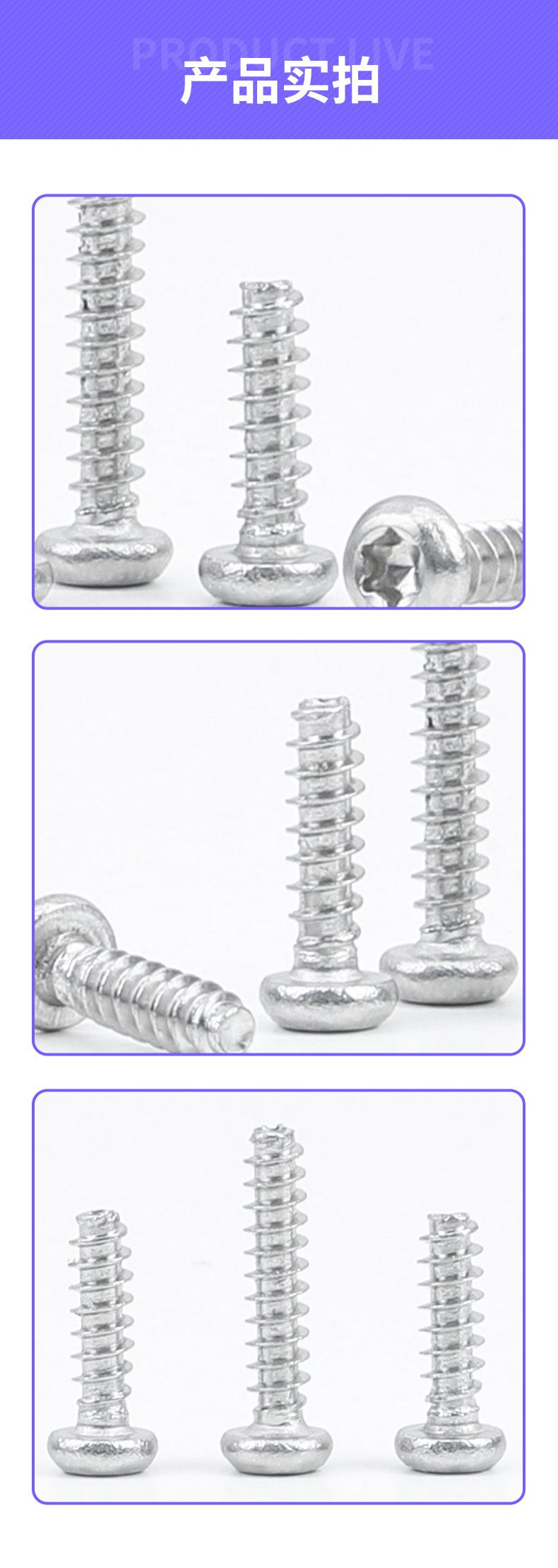 Parafuso auto-roscante de cauda plana PB 304 de aço inoxidável com fenda de cabeça redonda e cabeça de panela M2.6/M3/M4.2