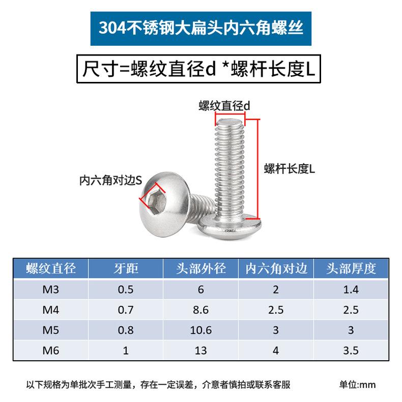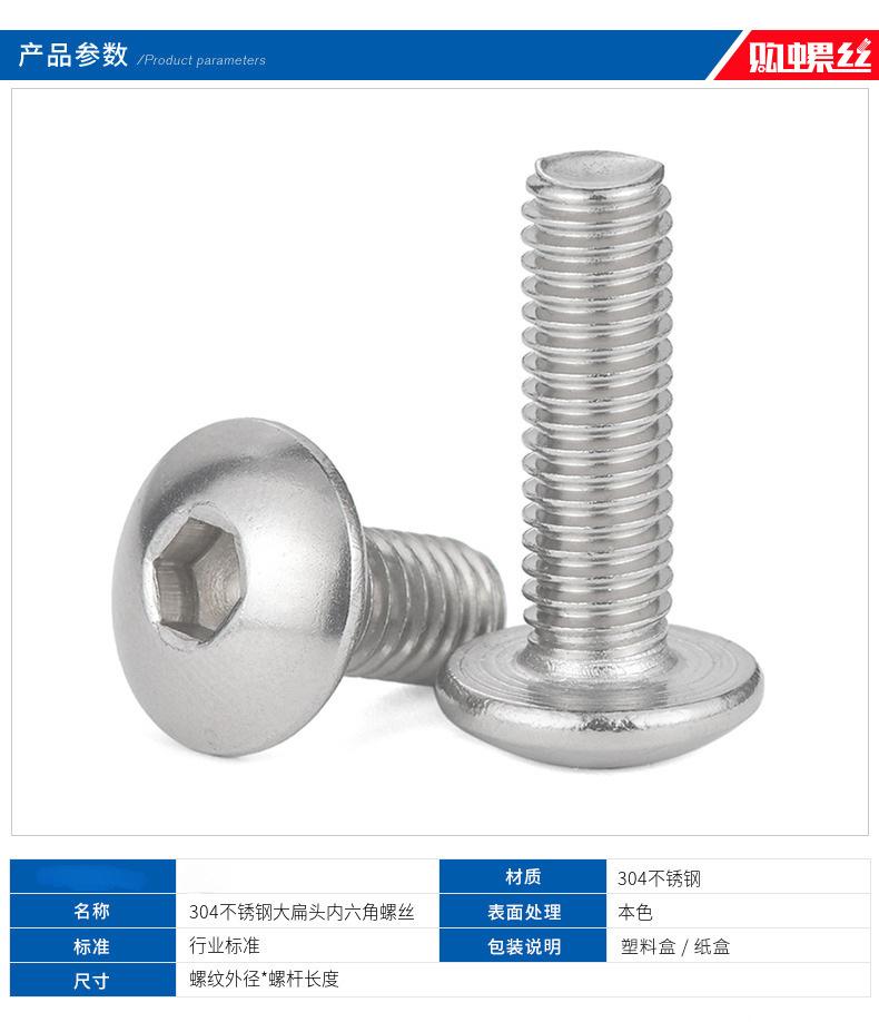 M3M4M5M 6 304 Aço Inoxidável Grande Cabeça Chata Parafuso de Soquete Hexagonal Cabeça Guarda-chuva Cabeça Grande Parafuso de Cabeça de Cogumelo Parafuso 6L