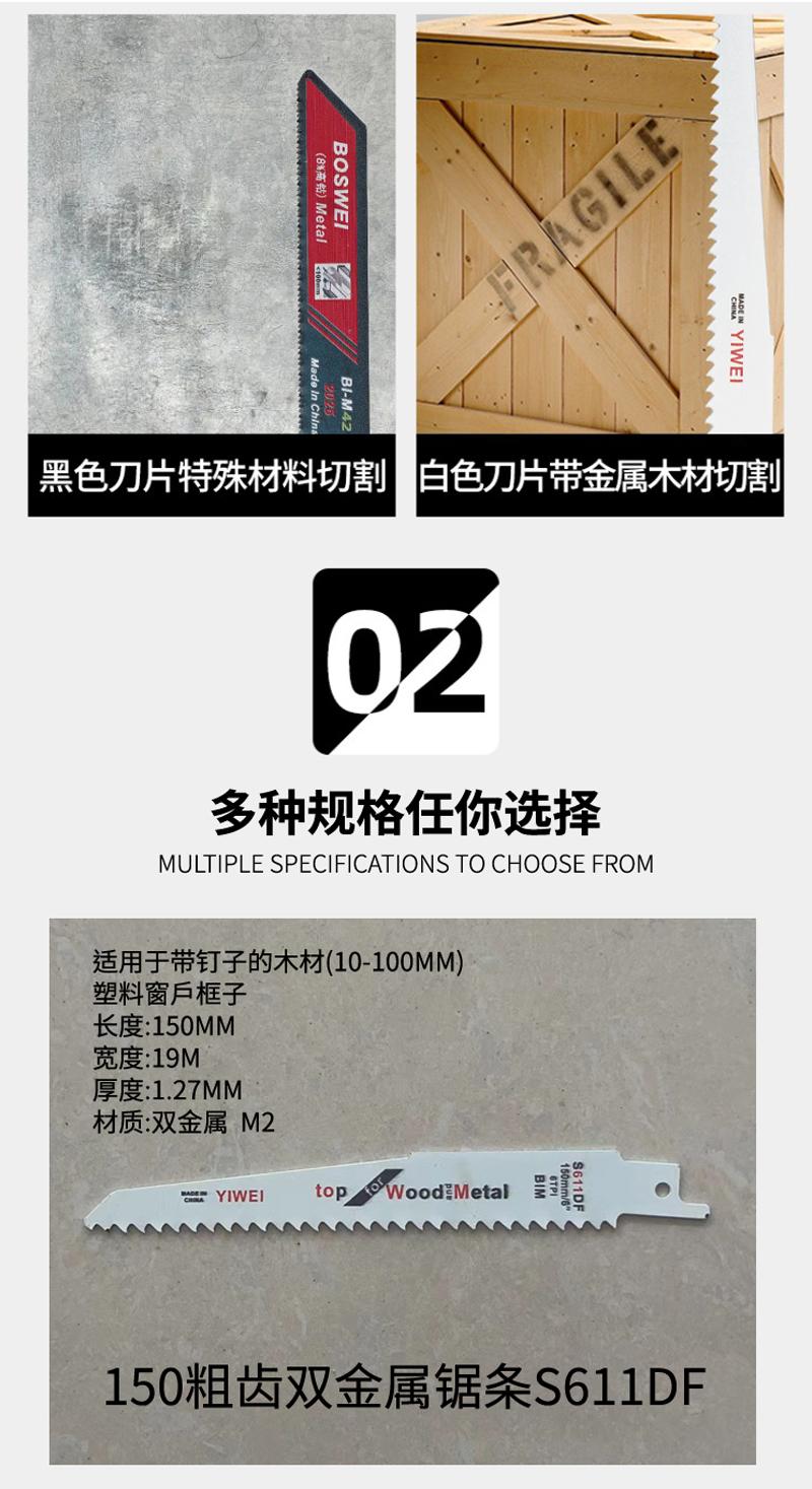 Lâmina de serra elétrica Lâmina de serra sabre Metal Madeira Alumínio Tubo de plástico Dentes grossos e finos Corte alternativo Serra de vaivém Máquina portátil Lâmina de serra