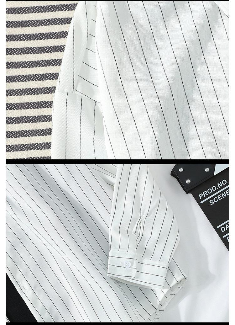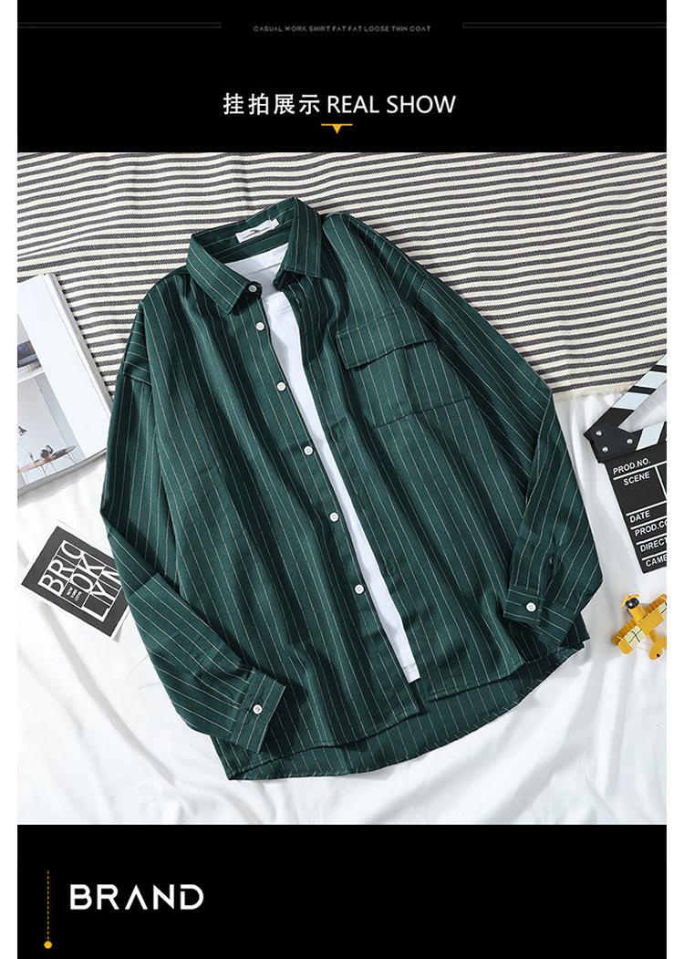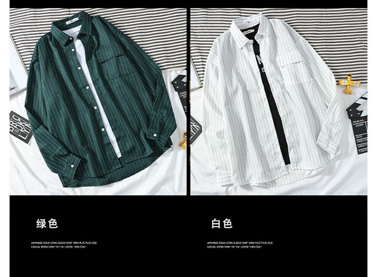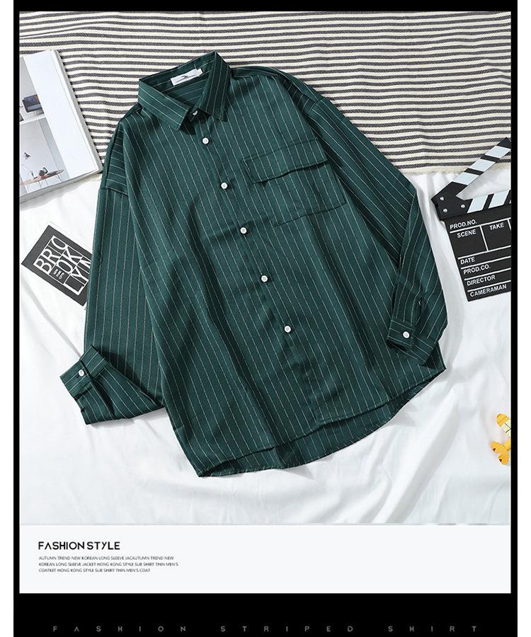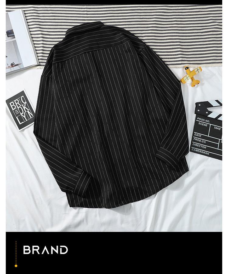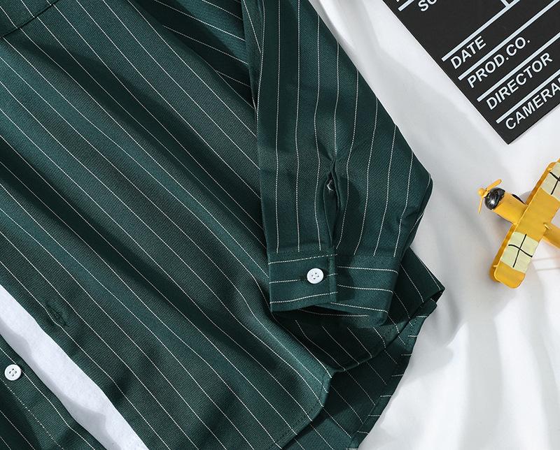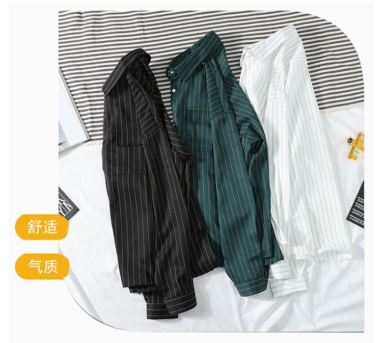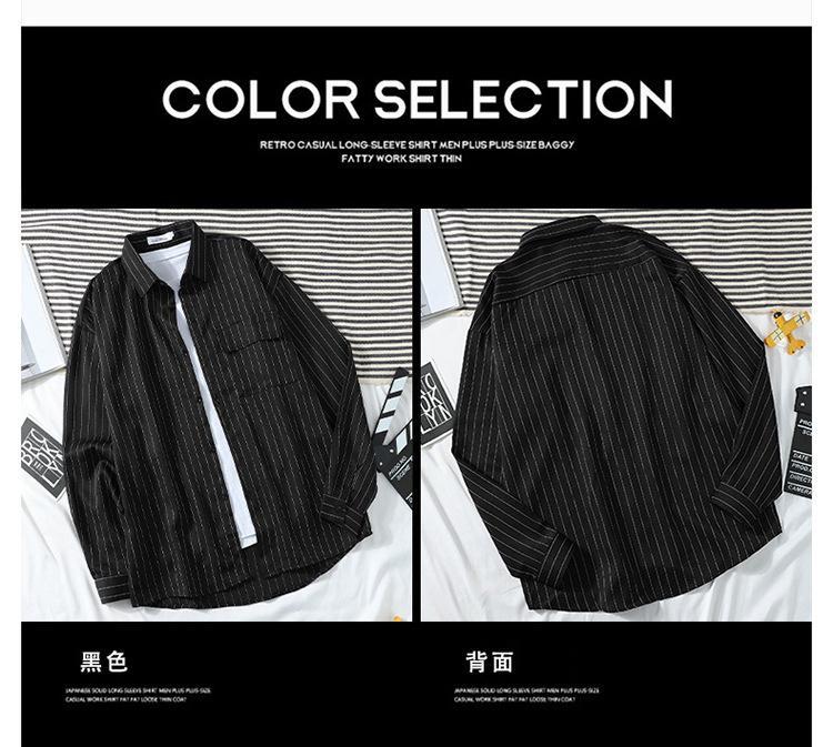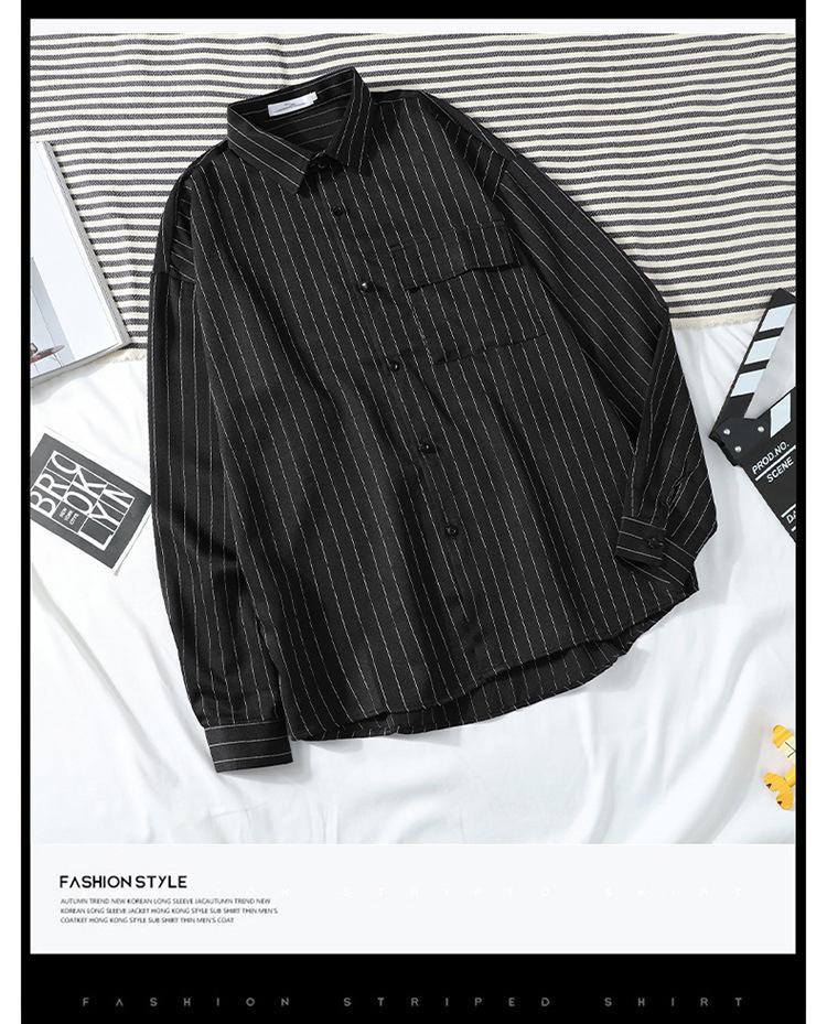 Camisa listrada vertical de outono e inverno, blusa solta de manga comprida estilo coreano, camisa masculina da moda estilo Hong Kong, camisa masculina da moda japonesa