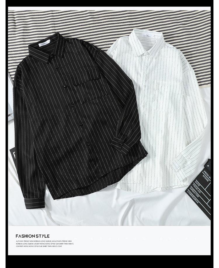 Camisa listrada vertical outono e inverno para homens estilo coreano moderna manga longa tops soltos estilo Hong Kong estilo japonês moda camisa masculina