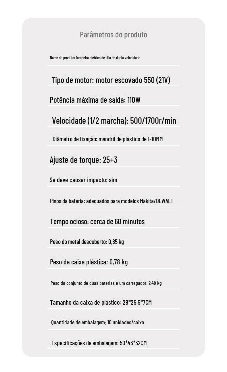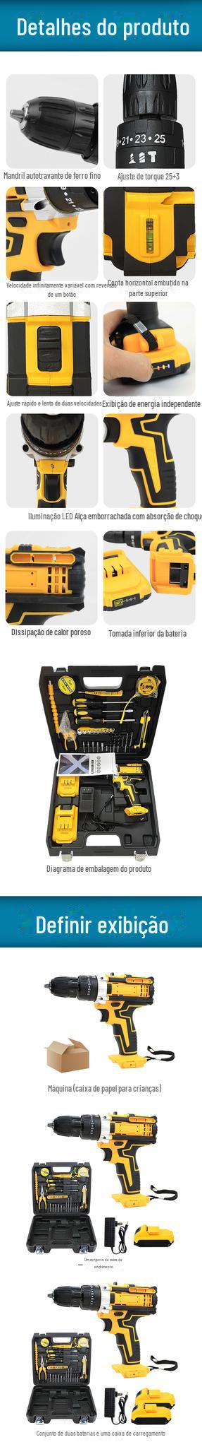 Furadeira elétrica de lítio 21V furadeira elétrica de impacto de duas velocidades chave de fenda elétrica de três funções ferramentas de hardware portáteis domésticos conjunto completo