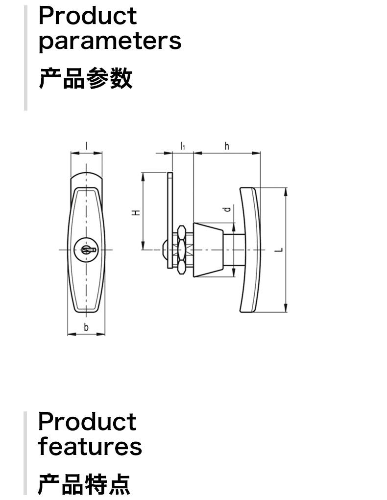 Fechadura Nbk Elesa Csmt com maçaneta em forma de T, operação com chave, peças de reposição mecânicas, fornecimento direto da fábrica