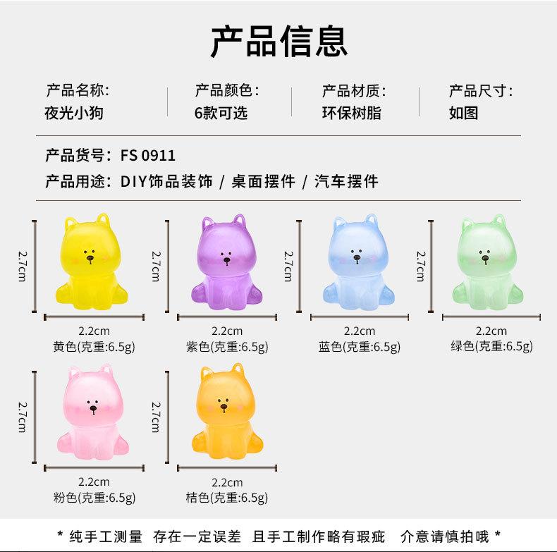 Filhote de cachorro luminoso diy resina artesanato acessórios desenho animado bonito doces cor carro ornamentos acessórios saco cego