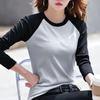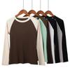 Camiseta de veludo com gola redonda e manga comprida para mulheres, outono e inverno, nova camisa de veludo dupla face com contraste de cor, parte inferior fina, parte interna e quente