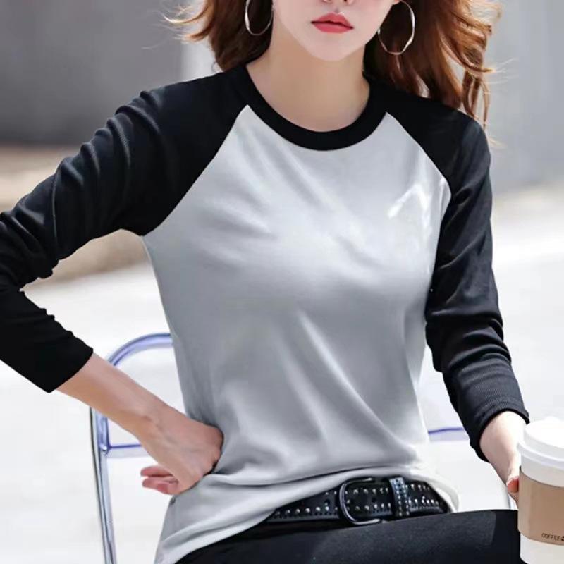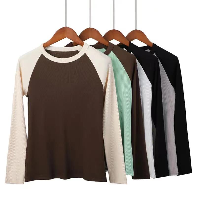 Compre Camiseta de veludo com gola redonda e manga comprida para mulheres, outono e inverno, nova camisa de veludo dupla face com contraste de cor, parte inferior fina, parte interna e quente no atacado no Joom.pro