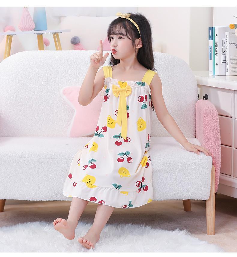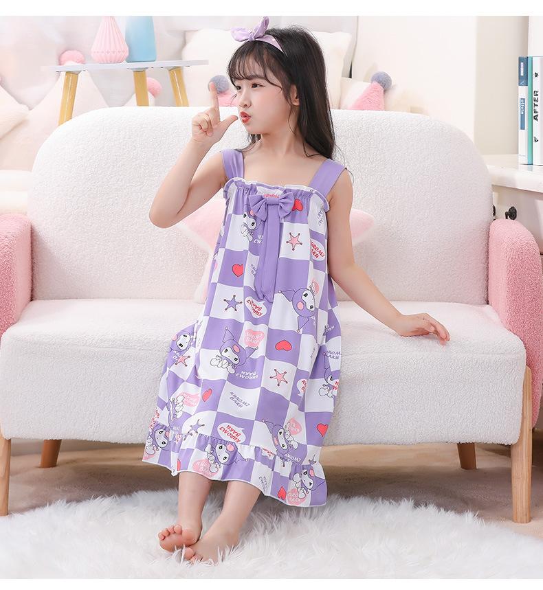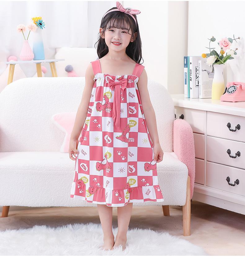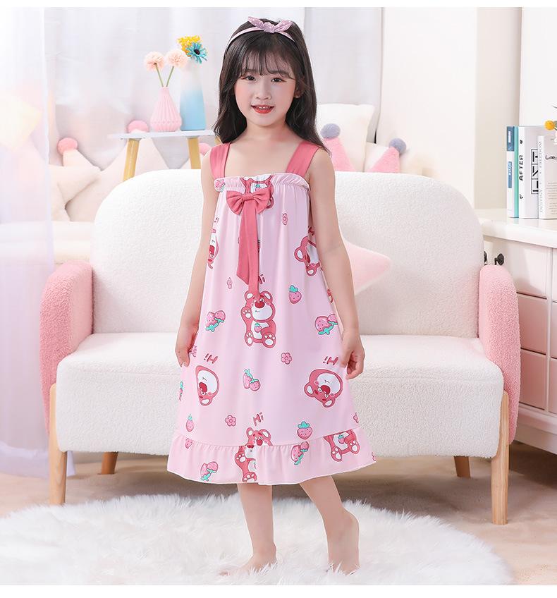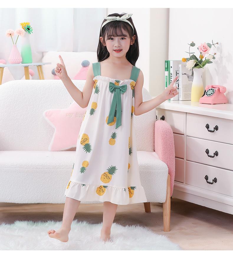 2023 verão pijamas infantis meninas manga curta alça bonito desenho animado pijamas vestido verão ar condicionado homewear