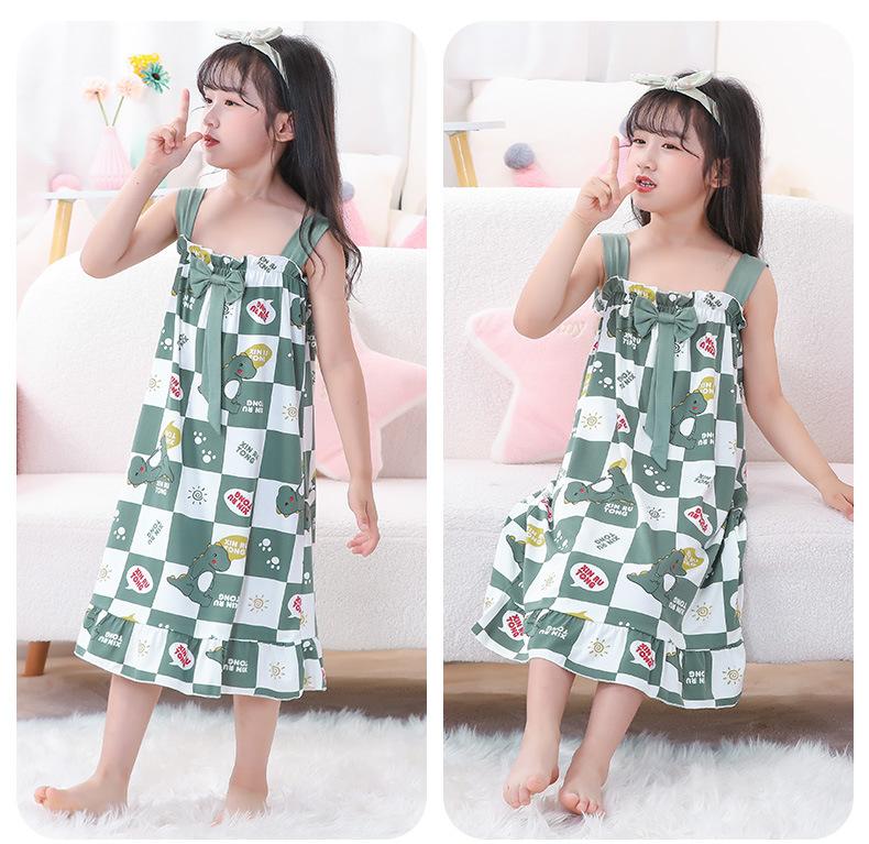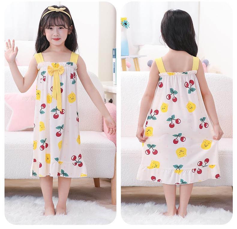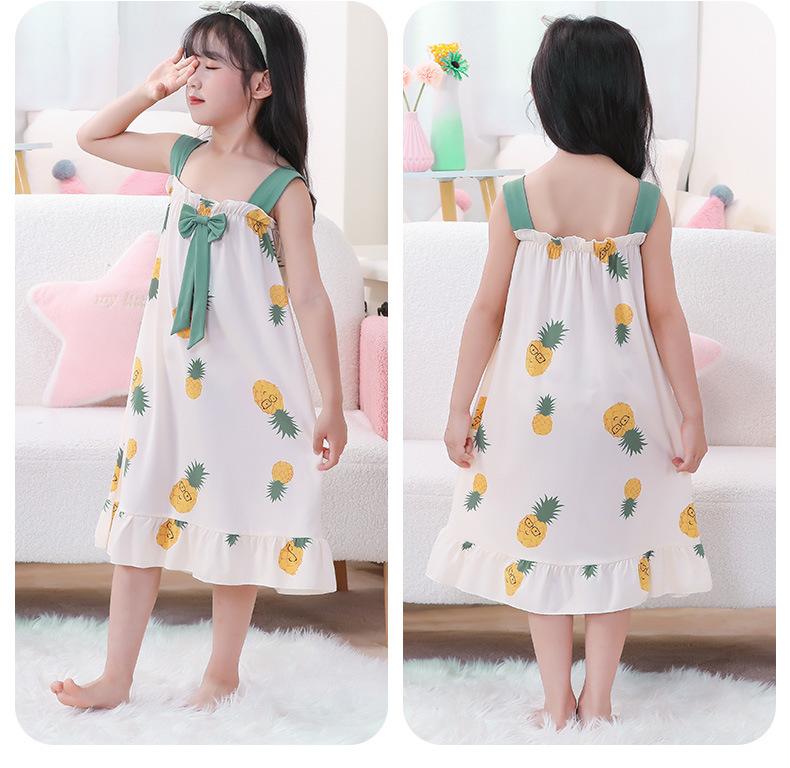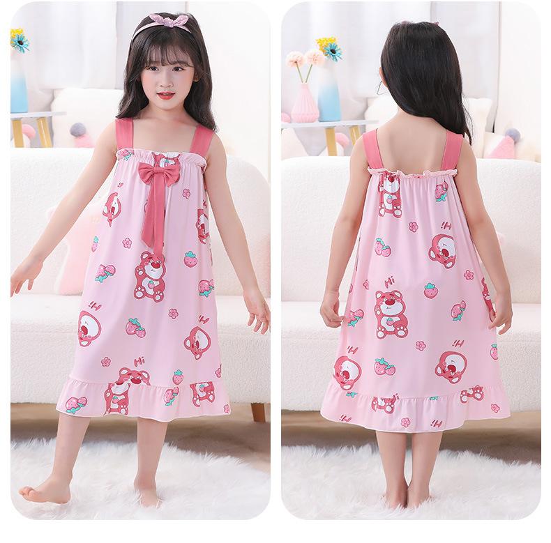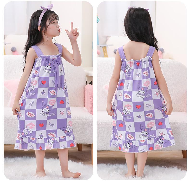 2023 verão pijamas infantis meninas manga curta alça bonito desenho animado pijamas vestido verão ar condicionado homewear