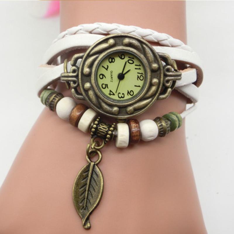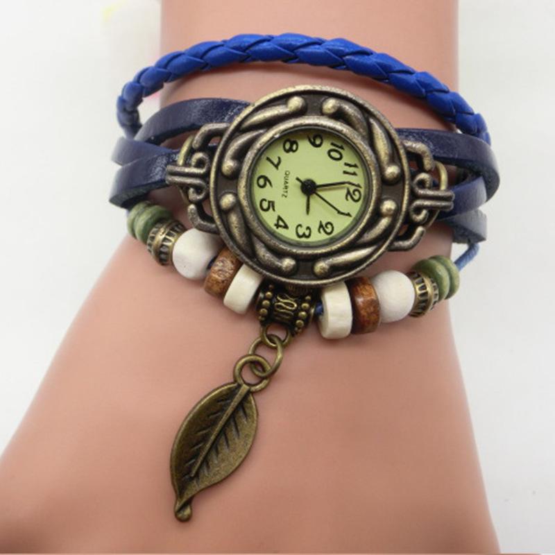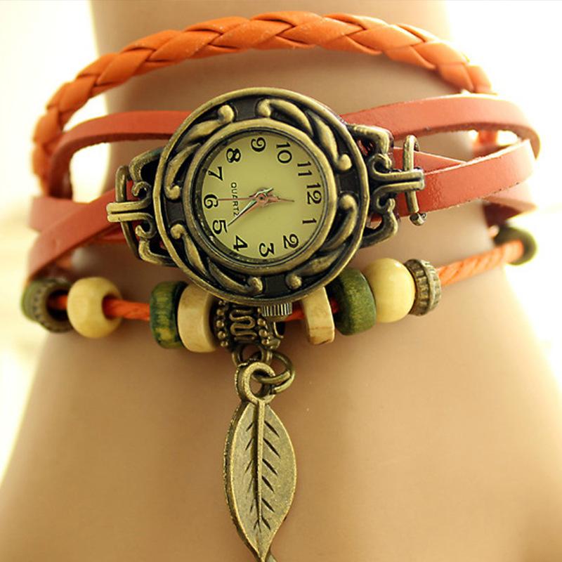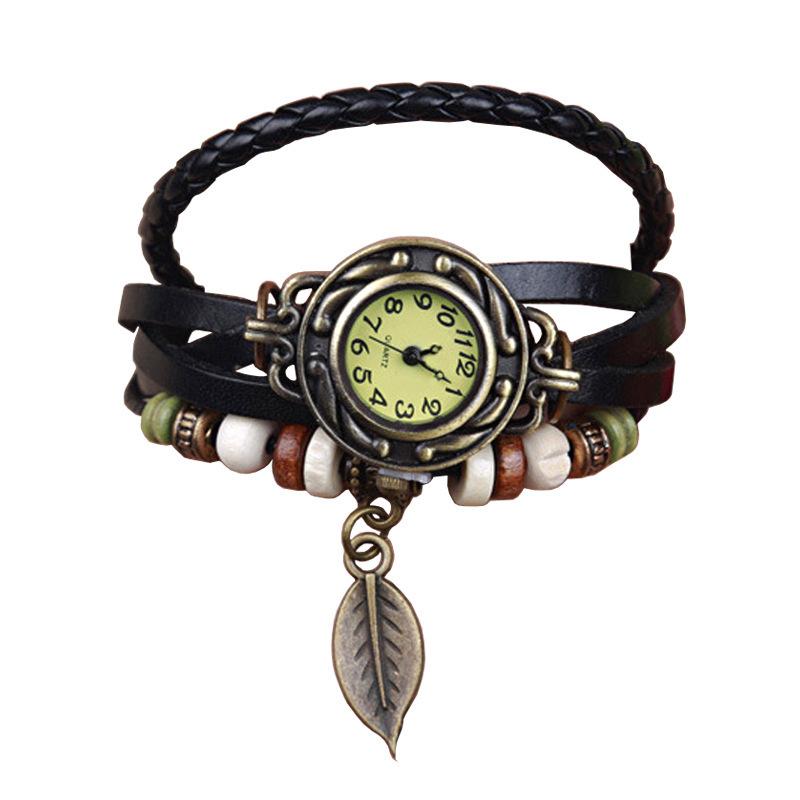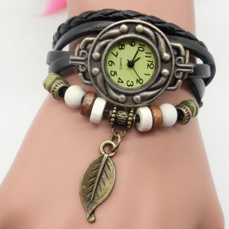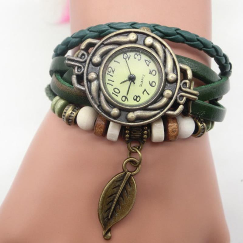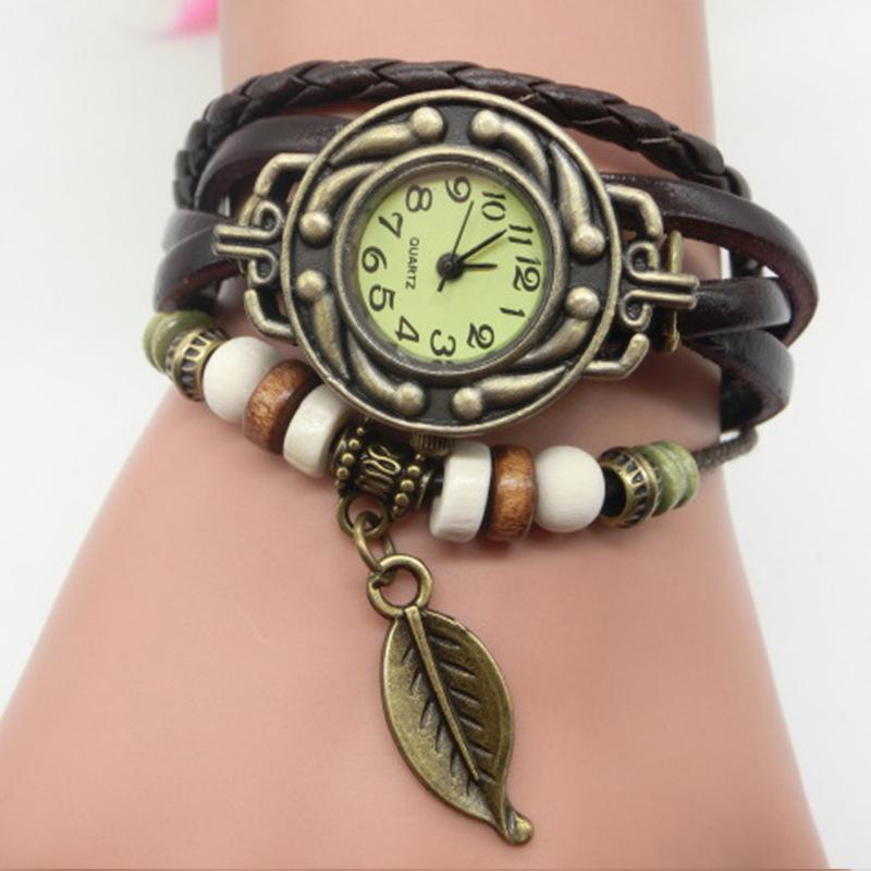 AliExpress vintage leaf watch-hand-woven bronze versátil vintage couro senhoras pulseira relógio atacado 795