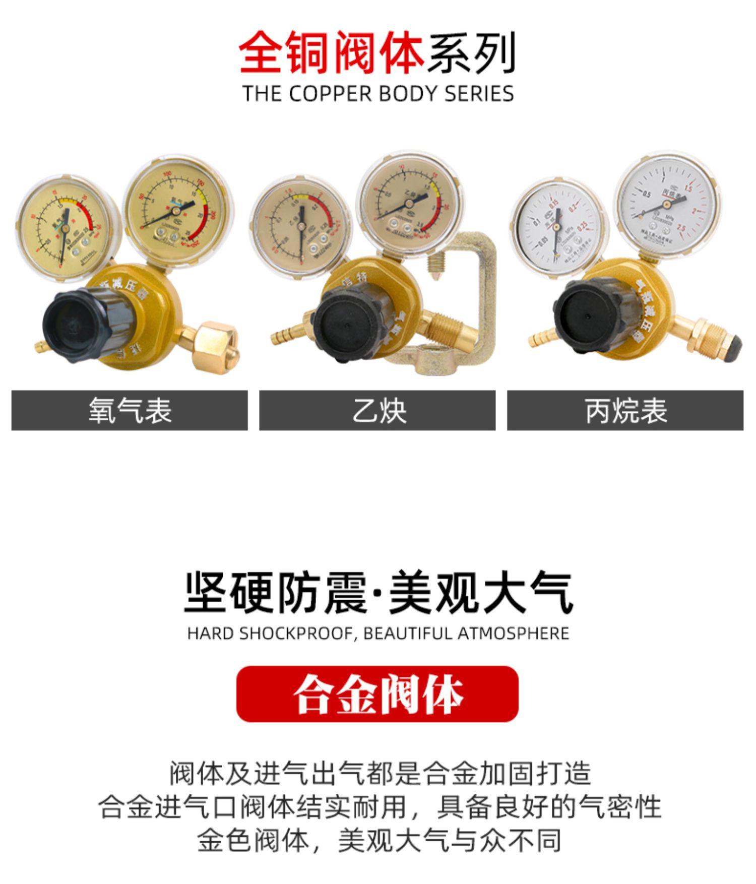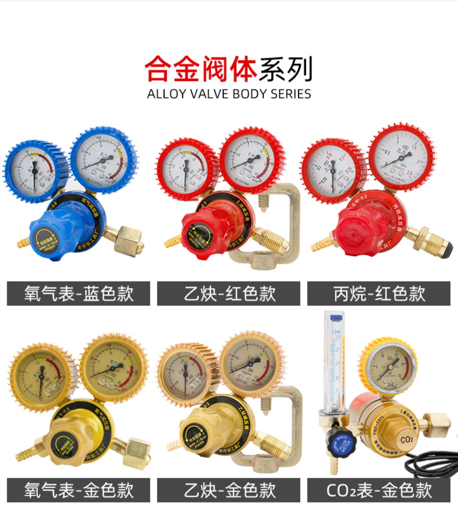 Medidor de oxigênio, válvula redutora de pressão, acetileno, gás liquefeito, medidor de propano, medidor de argônio, medidor de pressão de dióxido de carbono, redutor de pressão de cobre
