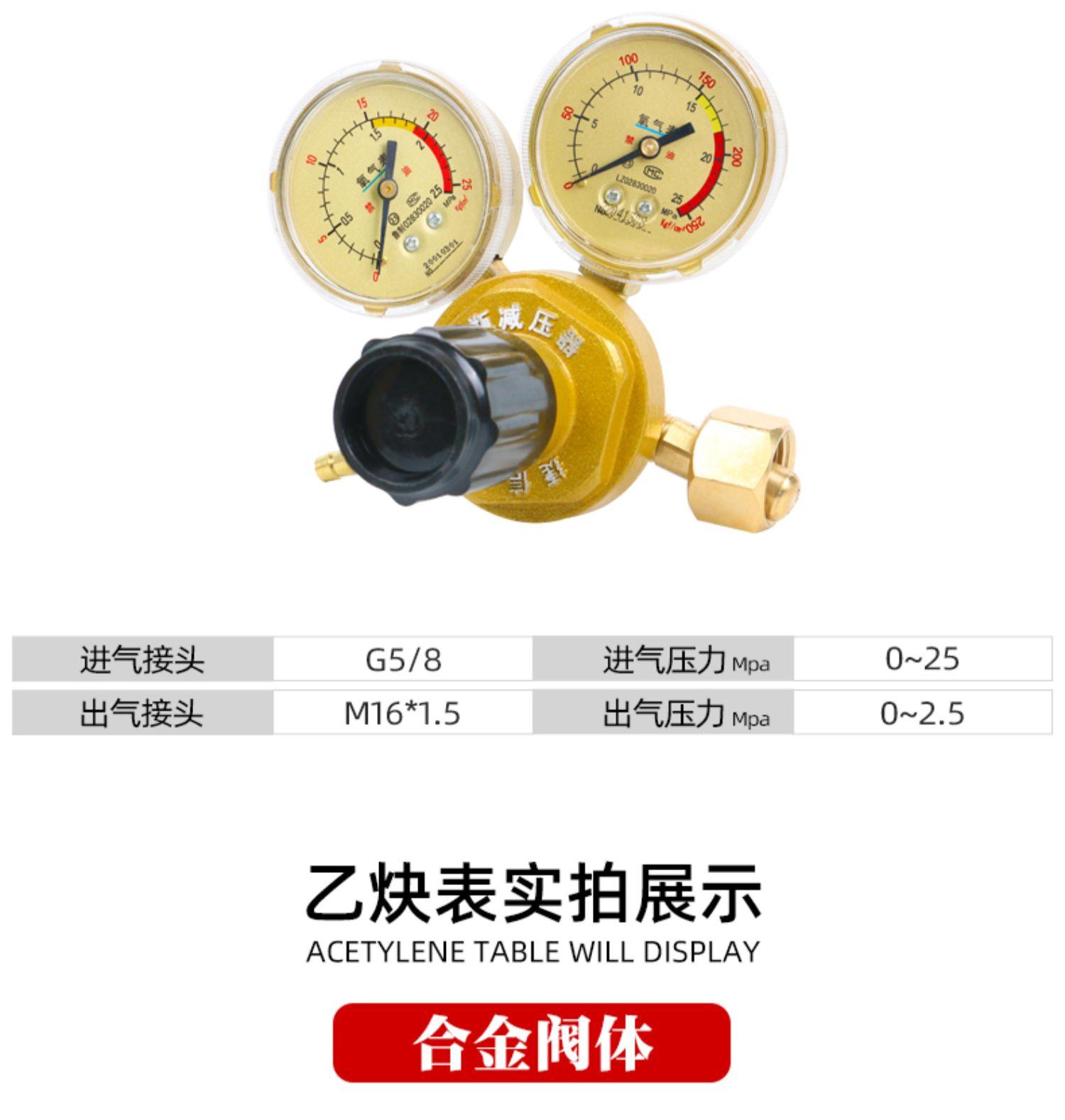 Gold vibrating oxygen meter with shock (alloy valve body), Gold anti-shock acetylene meter (alloy valve body),...